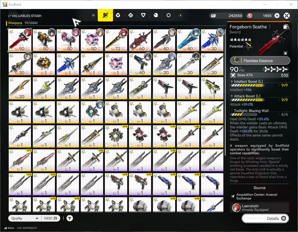 ASIA|Lv54|SSR8(3Limit)+14(*6WP)|(Laevatain,Yvon)+sign,Tangtang,(LastRiteP1,ArdeliaP2)+sign,Etc|Gryphlink|TakeMail|Check(END1824)