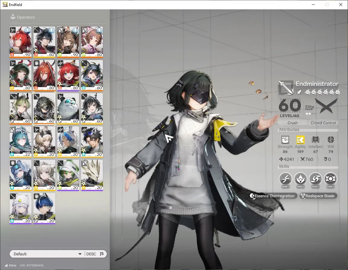 ASIA|Lv56|SSR7(4Limit)+15(*6WP)|(Laevatain,ZhuangFangyi)+sign,Gilberta,Tangtang,OprSel|Oro7370|Gryphlink|TakeMail|Check(END1801)