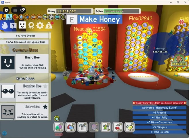Une fois tout confirmé, connectez-vous et poursuivez votre aventure dans Bee Swarm Simulator avec votre compte amélioré.