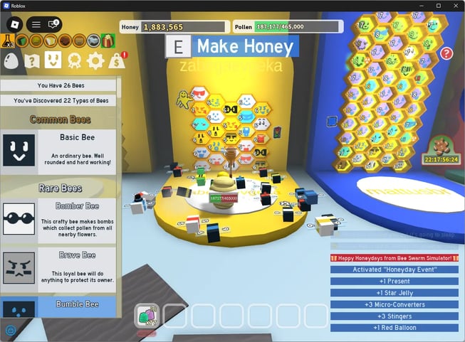 ❤️ Bee Swarm Simulator ❤️ 26 Bees ❤️ 6-7 lvl hive ❤️ 3.7M Honey ❤️ 2 Eggs ❤️