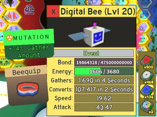 ROBLOX904//ACCOUNT WITH 50 Bees 6673 Tickets 5488 Stingers 20204 Gumdrops Fully Maxed Hive