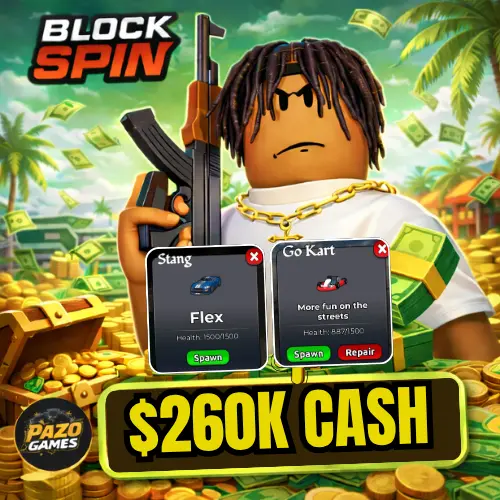 🌟 [BLOCKSPIN] 🌟 LVL 70 ⚡ STANG CAR ➕ GO KART ⚡ $260KCASH ✅ INSTANT DELIVERY