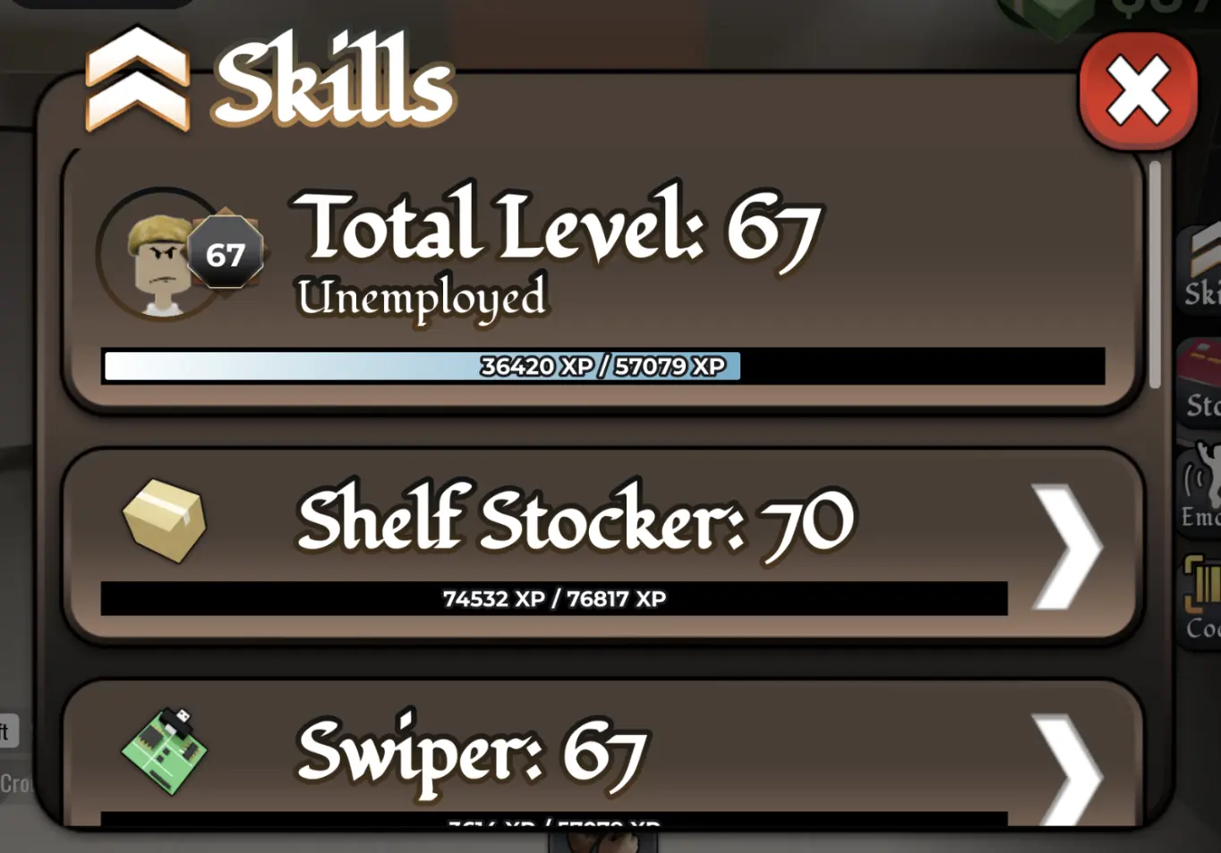๐ซใBLOCKSPINใ๐ Stang ๐ฐ 387K = $387,225 Cash ๐ Total Level 67 ๐ฆ Shelf Stocker 70 ๐ณ Swiper 67 โก Stamina 60 ๐ฟ Farming 58 ๐งน Janitor 53 โ