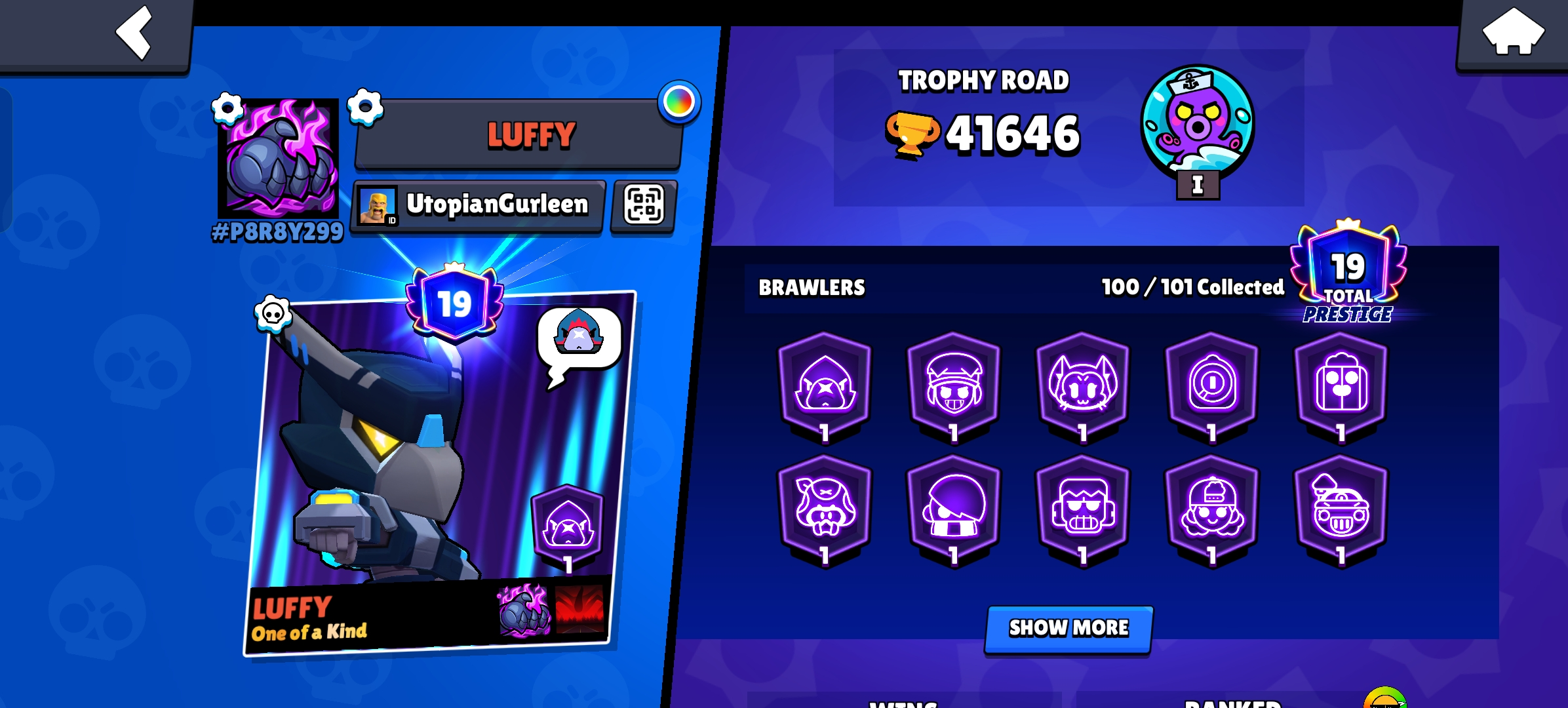 (2018 CREATION) 🤯 21 HYPERMAX 💰 20 WIN STREAK 👾 42000 TROPHIES 🏆 101/101 BRAWLERS 🔥 🫦 19 PRESTIGE ⚡200 + SKINS 💫 9 MYTHIC ✨7 LEGENDARY SKINS 👾NAME CHANGE AVAILABLE 💎 GOLD MECHA CROW, FULL ACCESS ✅ INSTANT DELIVERY 🚚