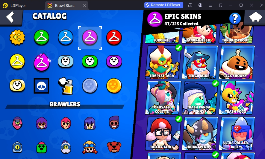 202 SKINS 💯 WHITE WOLF LEON 🧡 44.409 TROPHIES 🏆 94 BRAWLERS 🐼 18 HYPERCHARGED 🩸 18 MAX BRAWLERS 💛 LAMBENT MORTIS 🧡 DARK ANGEL EDGAR 🧡 CURSED KENJI 🧡 CRASH TEST DARRYL 🧡 TEMPEST TARA 💯