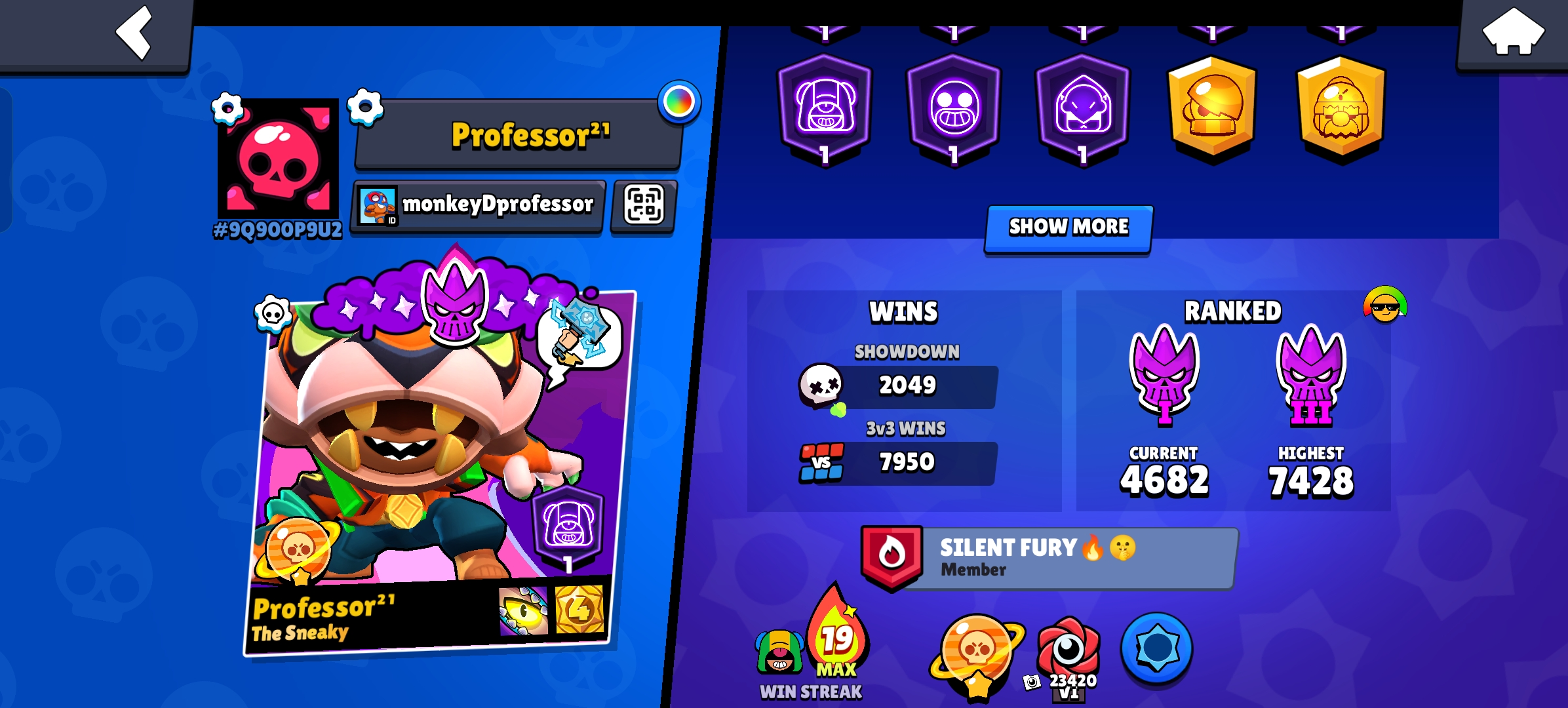 (2020 CREATION) 🤯 45 HYPERMAX 💰47000 TROPHY 🏆 19 WIN STREAK 👾 101/101 BRAWLERS 🔥 🫦 8 PRESTIGE ⚡300 + SKINS 💫 10 MYTHIC ✨6 LEGENDARY SKINS 👾NAME CHANGE 💎 CURSED KENJI,CLOCKWORK KAZE 🥶FULL ACCESS ✅ INSTANT DELIVERY 🚚
