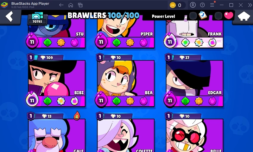316 SKINS 💯 70.795 TROPHIES 🏆 100 BRAWLERS 🐼 43 HYPERCHARGED 🩸 42 PRESTIGE 💜 57 MAX BRAWLERS 💛 21 BUFFIES 🔑 BELLE GOLDHAND 🧡 KING LOU 🧡 MECHA PALADIN SURGE 🧡 ONI KENJI 🧡 DEMON MORTIS 💯 60K 70K