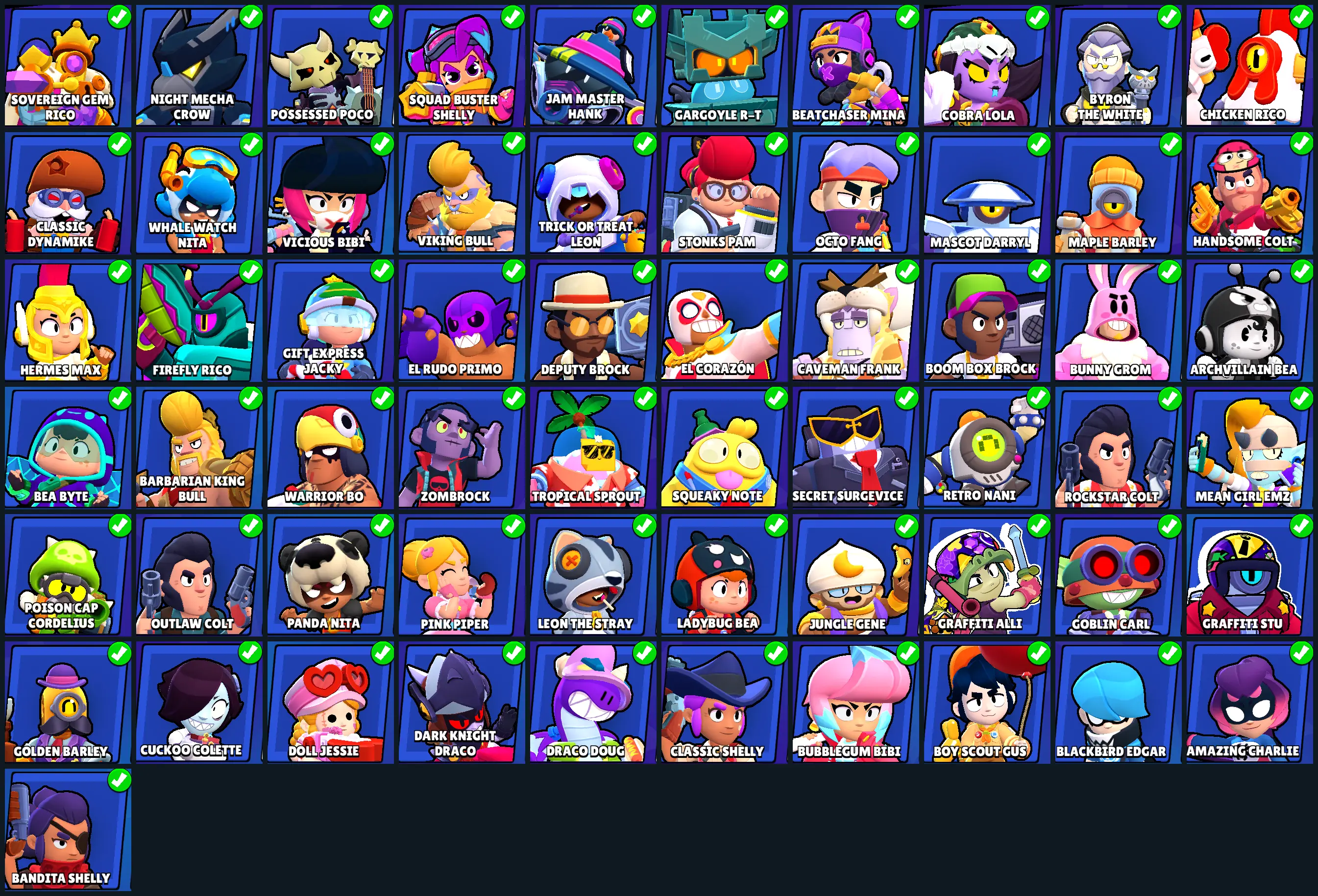 70 SKINS | 25888 TROPHIES | POSSESSED POCO | HERMES MAX | WARRIOR BO | BYRON THE WHITE | NIGHT MECHA CROW | POISON CAP CORDELIUS | SQUAD BUSTER SHELLY | EL CORAZÓN | DEPUTY BROCK | ZOMBROCK | FIREFLY RICO | SOVEREIGN GEM RICO | 80 BRAWLERS