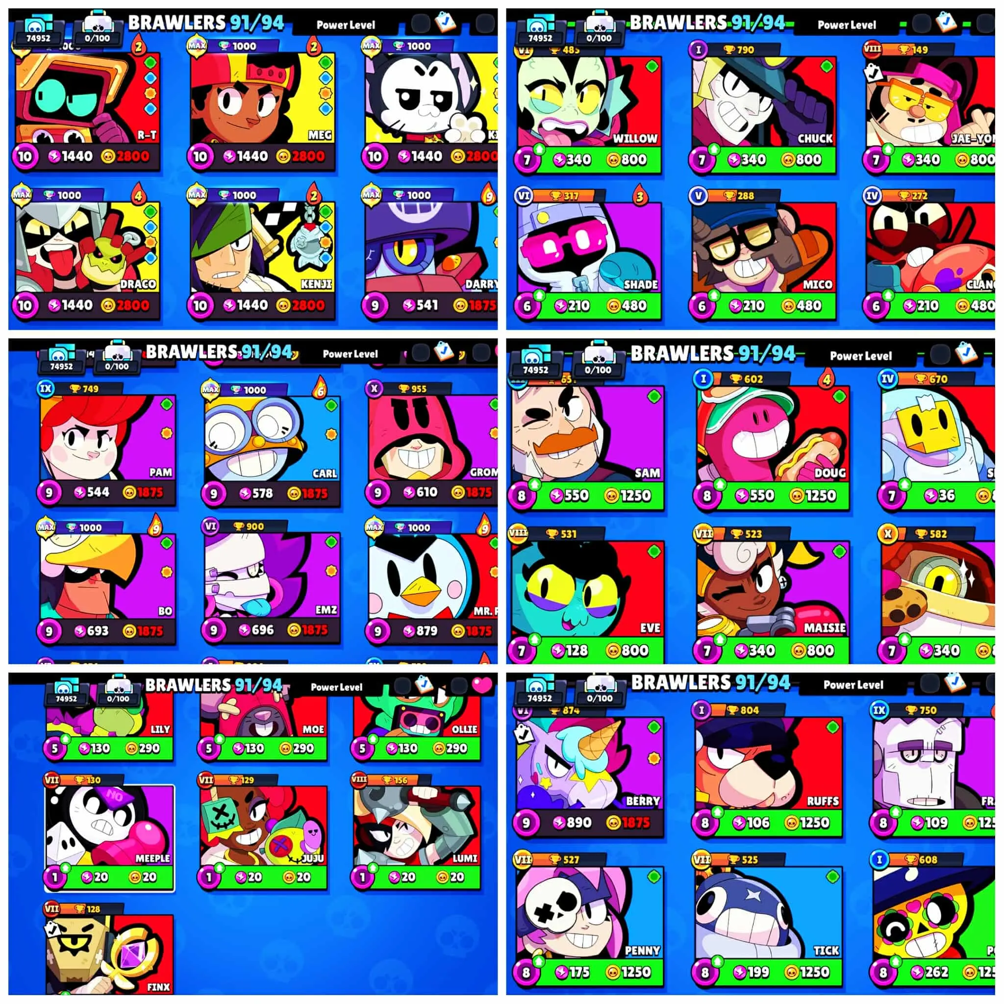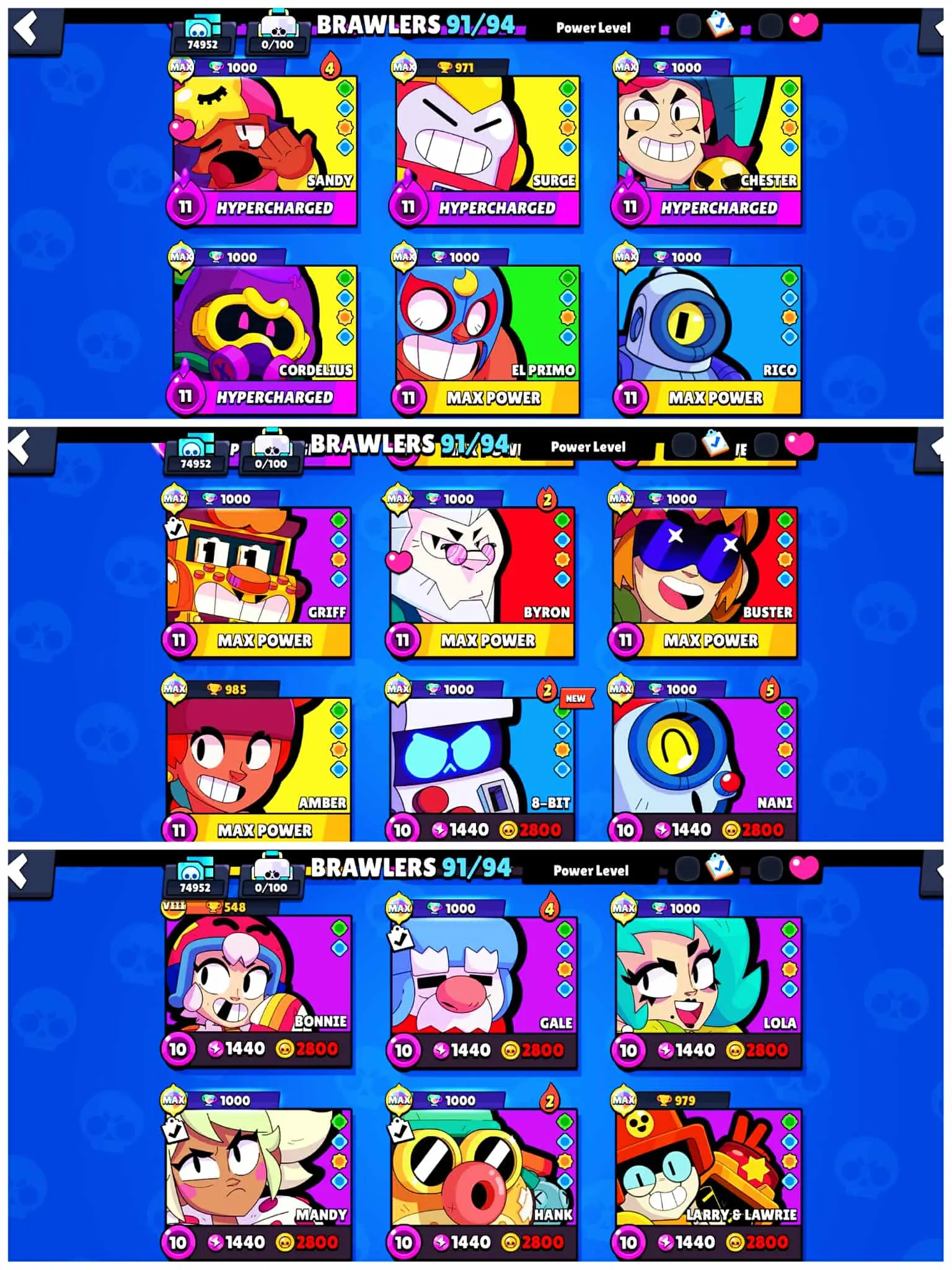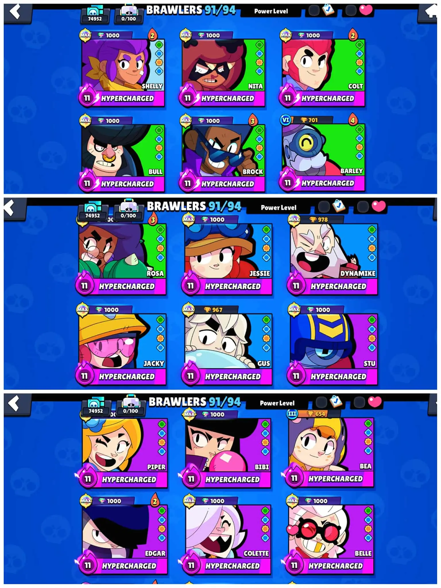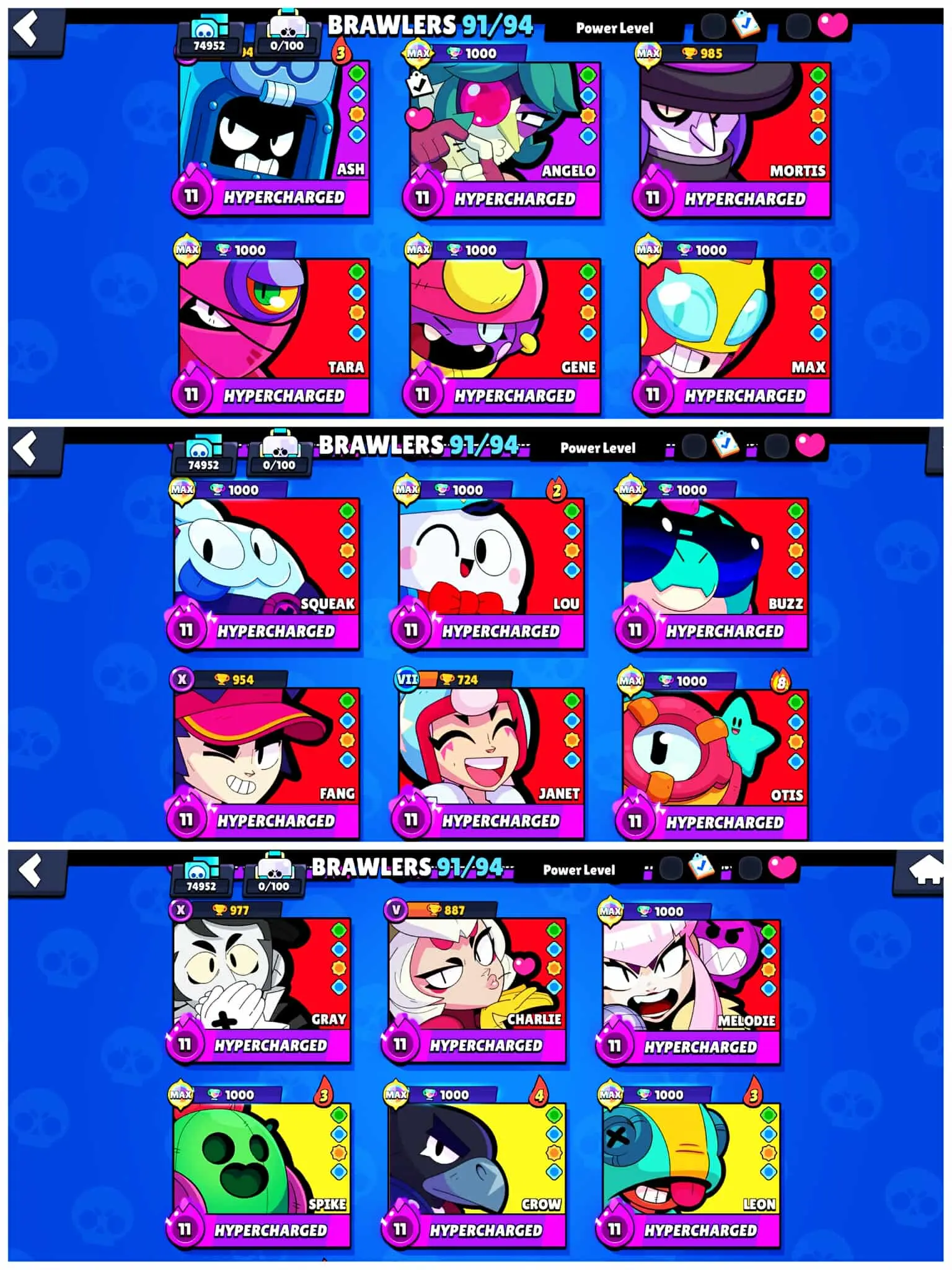 91 BRAWLER🔥74,952+ TROPHY🏆46 MAX BRAWL🔥40 HYPERCHARGED💠22 Win Streak✨250+ Skin💠Lots Of Brawl 1,000+ Trophy Mission Complete🌟True Gold Doug💙Lots of Rare Skin💙Android And Ios•Full Access✅INSTANT DELIVERY✅