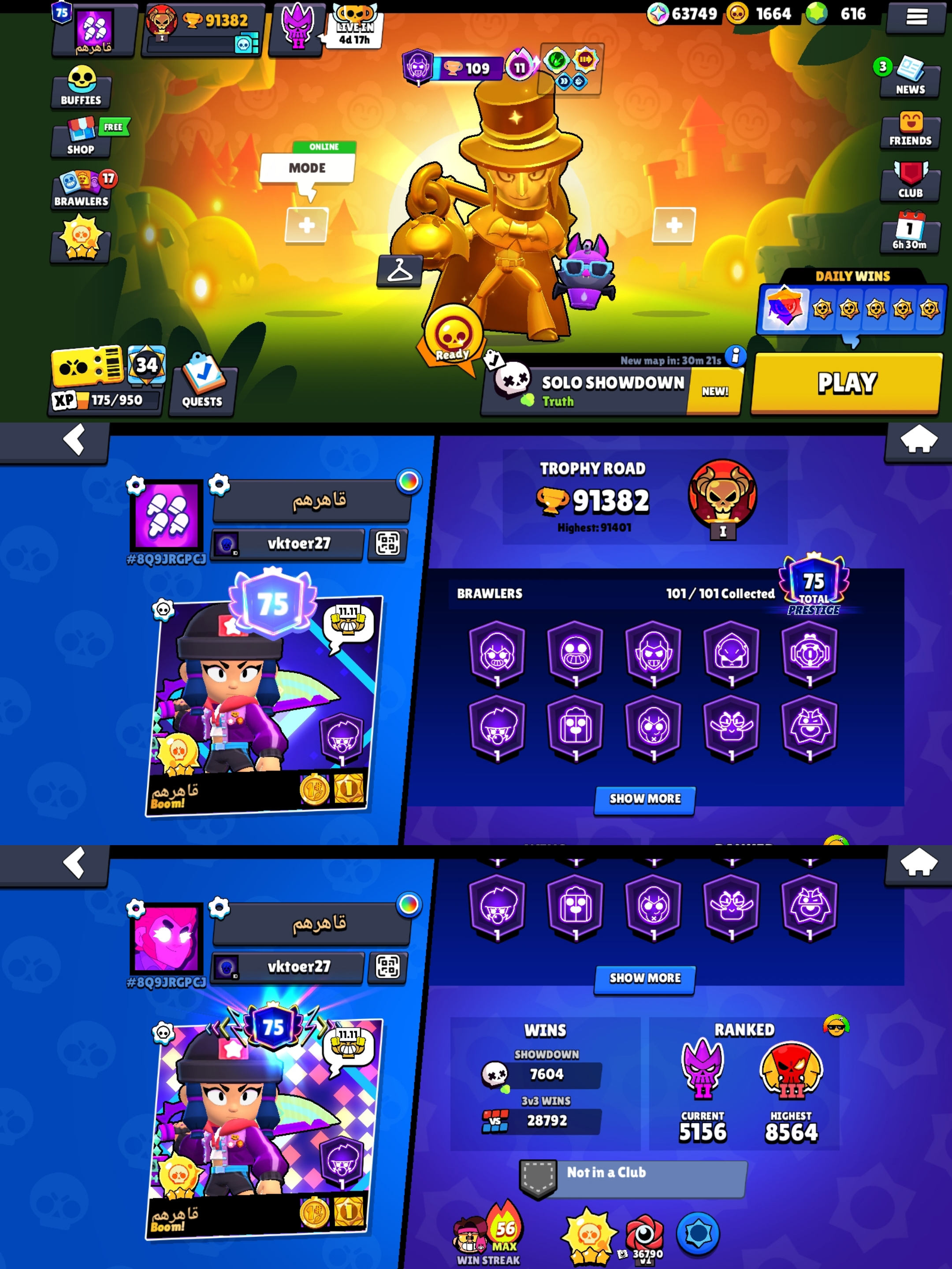 ♻️91k TROPHIES♻️HEROINE BIBI♻️SANTA MIKE♻️88 MAX POWER BRAWLER♻️101 BRAWLER UNLOCK♻️77 HYPERCHARGE♻️373 SKIN♻️600 GEMS♻️RENAME AVAILABLE♻️INSTANT DELIVERY♻️