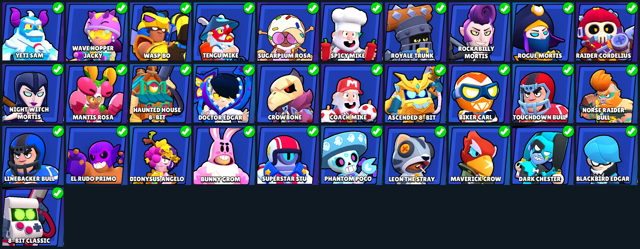 ❤️ GEMS SPENT 3566 ❤️ 34 SKINS ❤️ MANTIS ROSA ❤️ CROWBONE ❤️ SUGARPLUM ROSA ❤️ BLACKBIRD EDGAR ❤️ DOCTOR EDGAR ❤️ 10710 Trophy ❤️ MAX BRAWLER 3 ❤️ FULL ACCESS ❤️ IOS/ANDROID ❤️