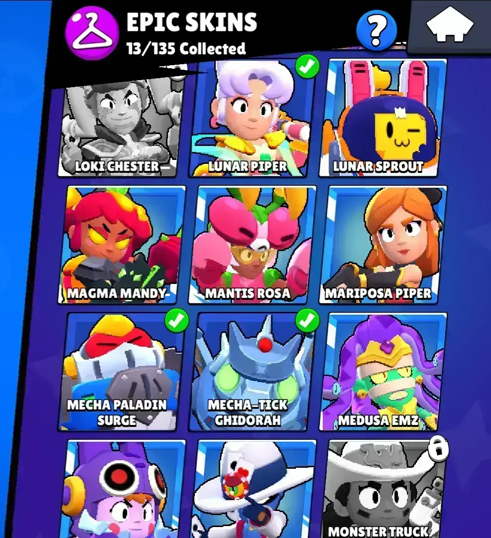 GEMS SPENT 4724 | 56 SKINS | CROWBONE | KITBOXER | LUNAR PIPER | MECHA PALADIN SURGE | MECHA-TICK GHIDORAH | SCARLET PALADIN SURGE | SPIKY EVE | SUPER RANGER BROCK(BLACK | YELLOW) | VALKYRIE JANET | TRASH POCO | SQUAD BUSTER SHELL