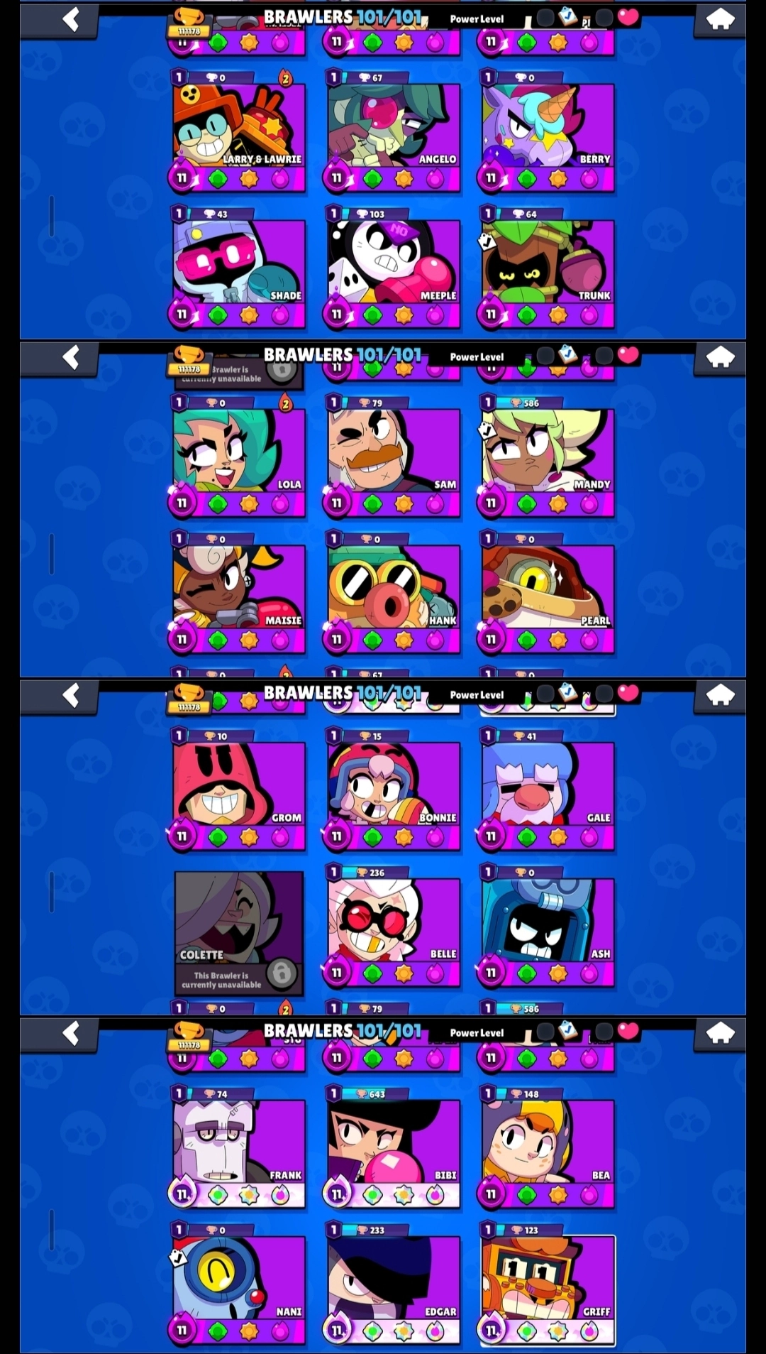 🌸 (RAREST) 662 OG SKINS 💎 BLUE KING FRANK 🌟 111178 TROPHIES 🏆 BOTH 2024 & 2025 MASTERS 🎯 ALIEN FAME ❄️ ALL 101 HYPERCHARGED 😈 1426 COLLECTOR'S PINS 🏅 4x LEADERBOARD PRESTIGE 💪 45 BUFFIES 🍓 128K POWER POINTS & 136K COINS 💰 MERCHANT GALE ✨️ MAN-O-WAR DOUG