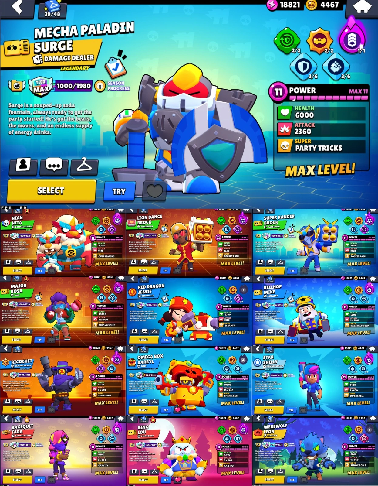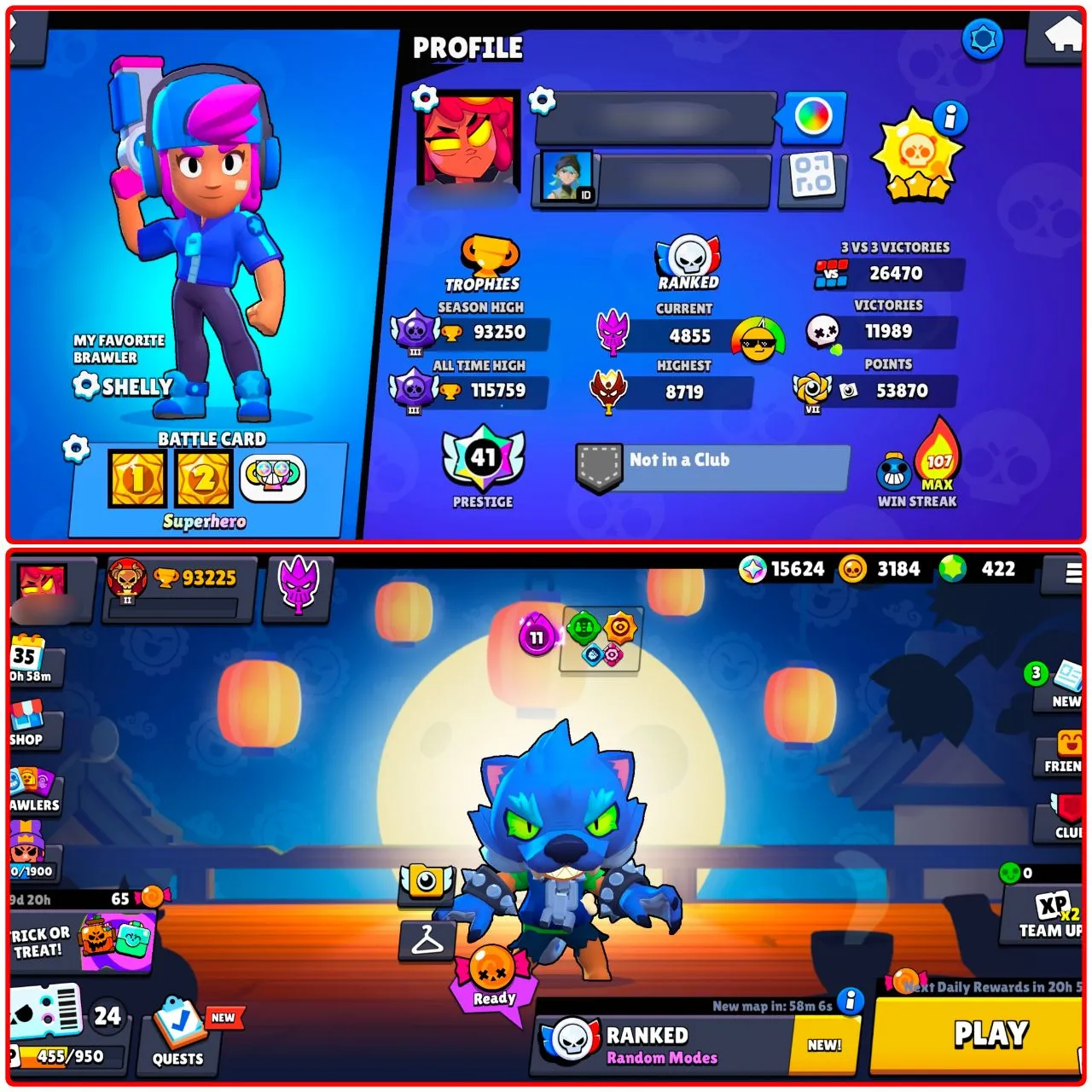 🏆 RAREST PRESTIGE 41 🏆 115k HIGHEST RECORD 🔥 94 MAX BRAWLERS 📛 72 HYPERCHARGED 💎 315+ SKINS 🥰 38 TITLES ✅ STAR SHELLY ⭐ WEREWOLF LEON 😎 LION DANCE BROCK ✨ INSTANT DELIVERY 🚚