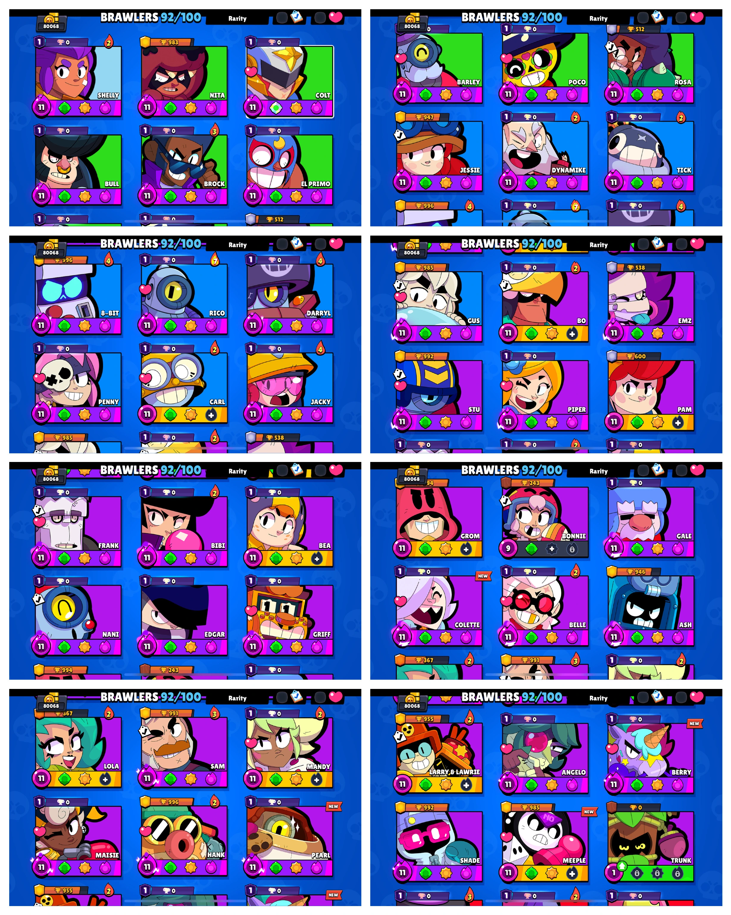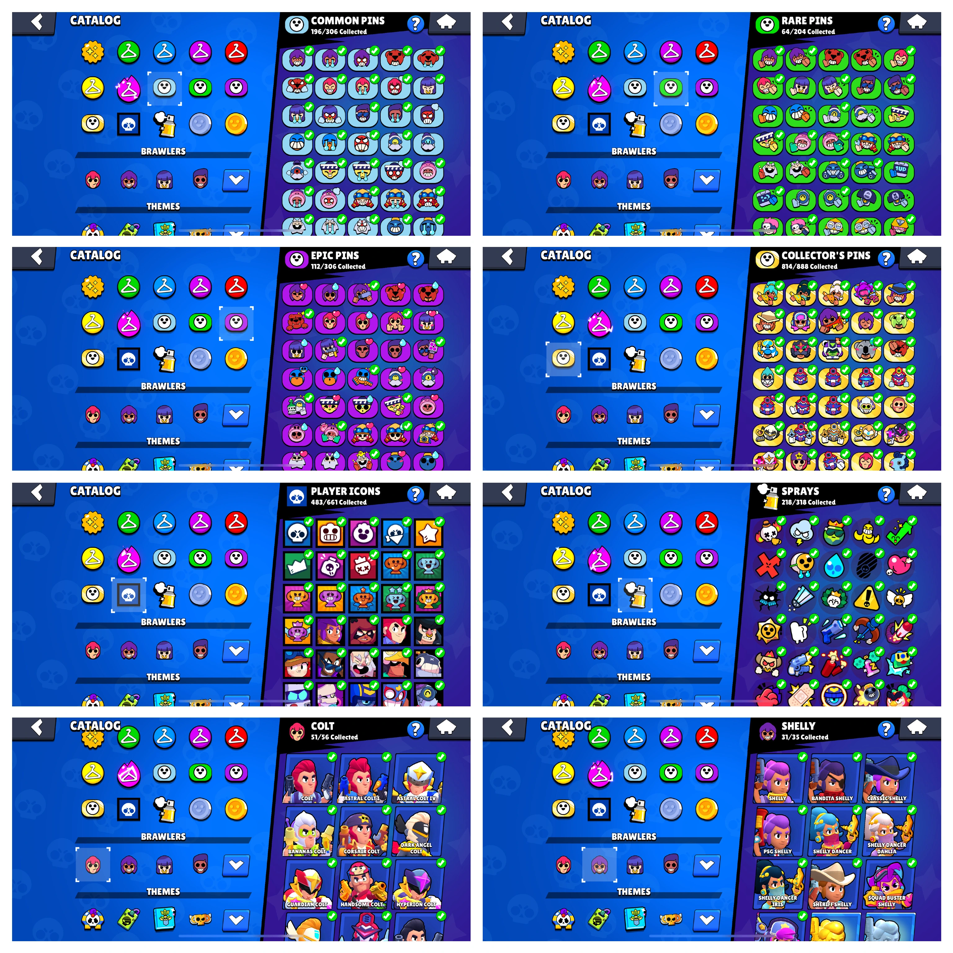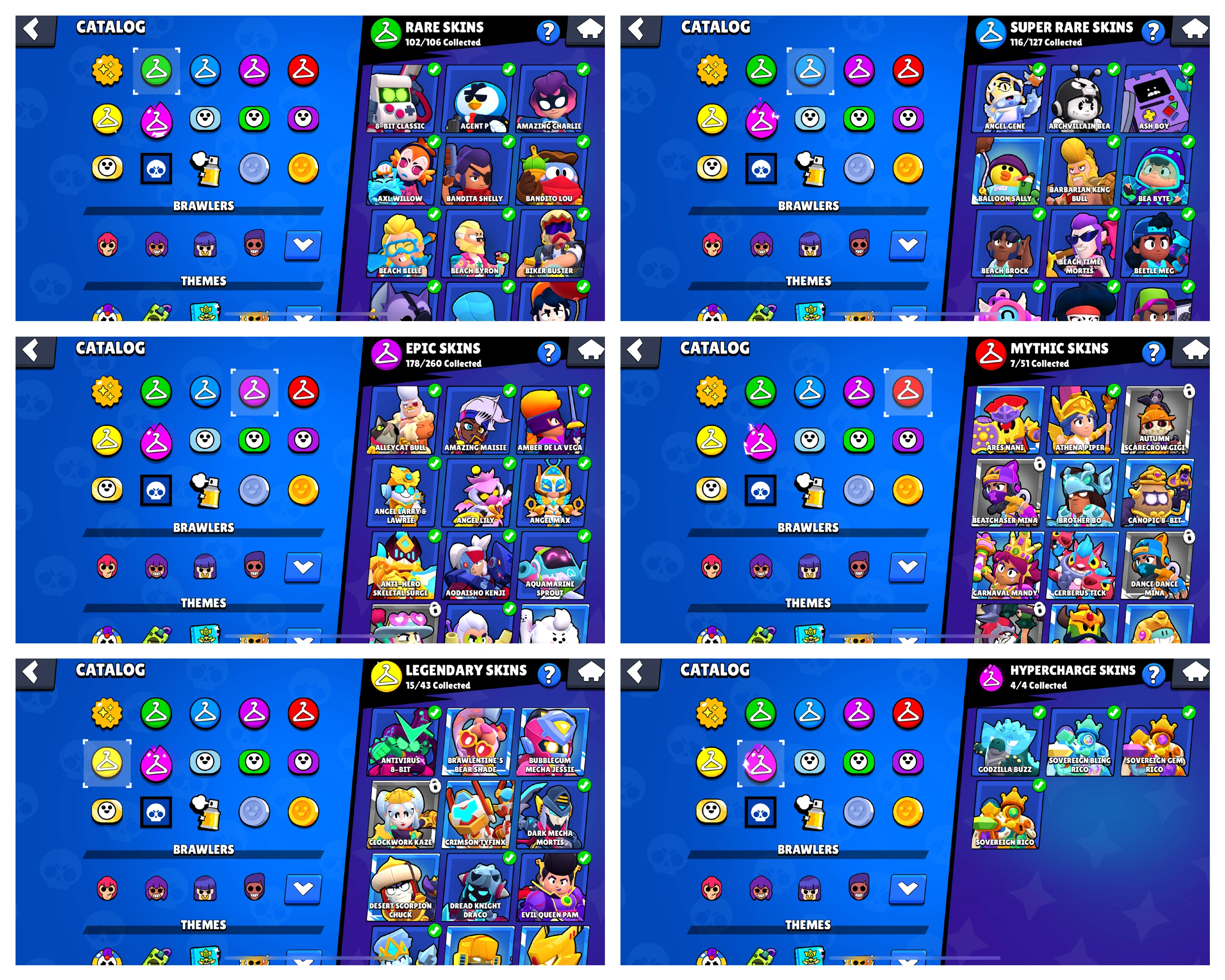 TOTAL: 422 SKINS ✅ 83 Brawler Max ✅ 61 HC ✅ 80K Trophy ✅ 92 Brawlers ✅ Rare Skins-102, Epic-178, Super Rare-116, Legendary-15, Mythic-07, HC Skins-4✅ Android & Ios