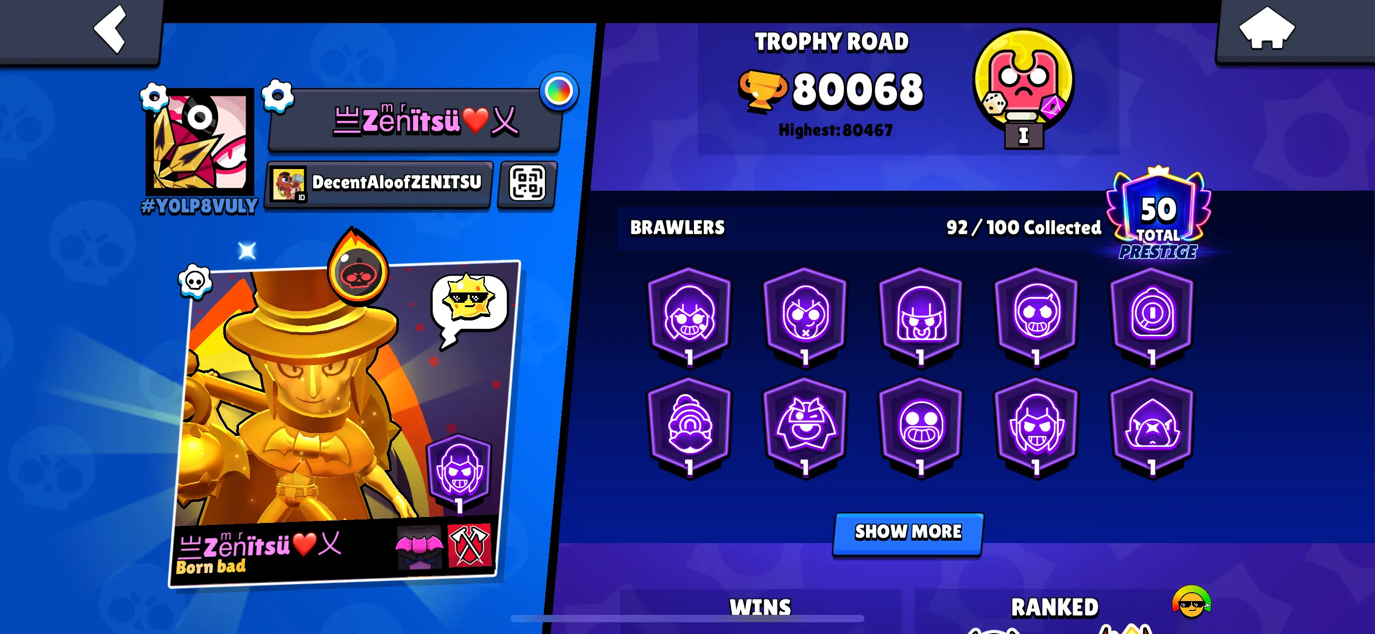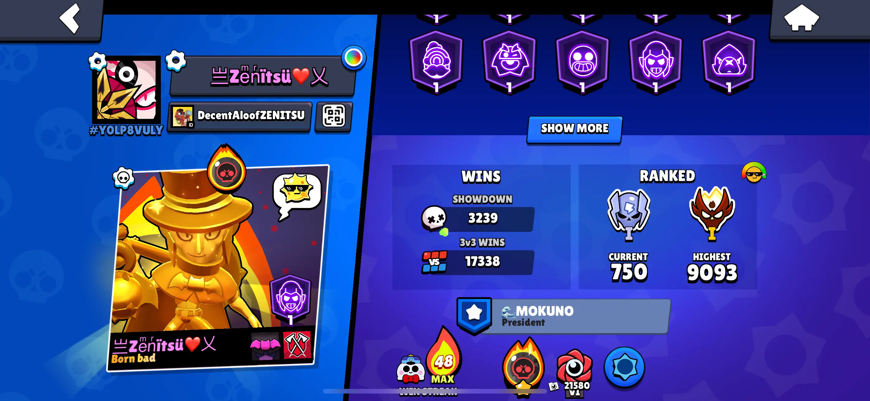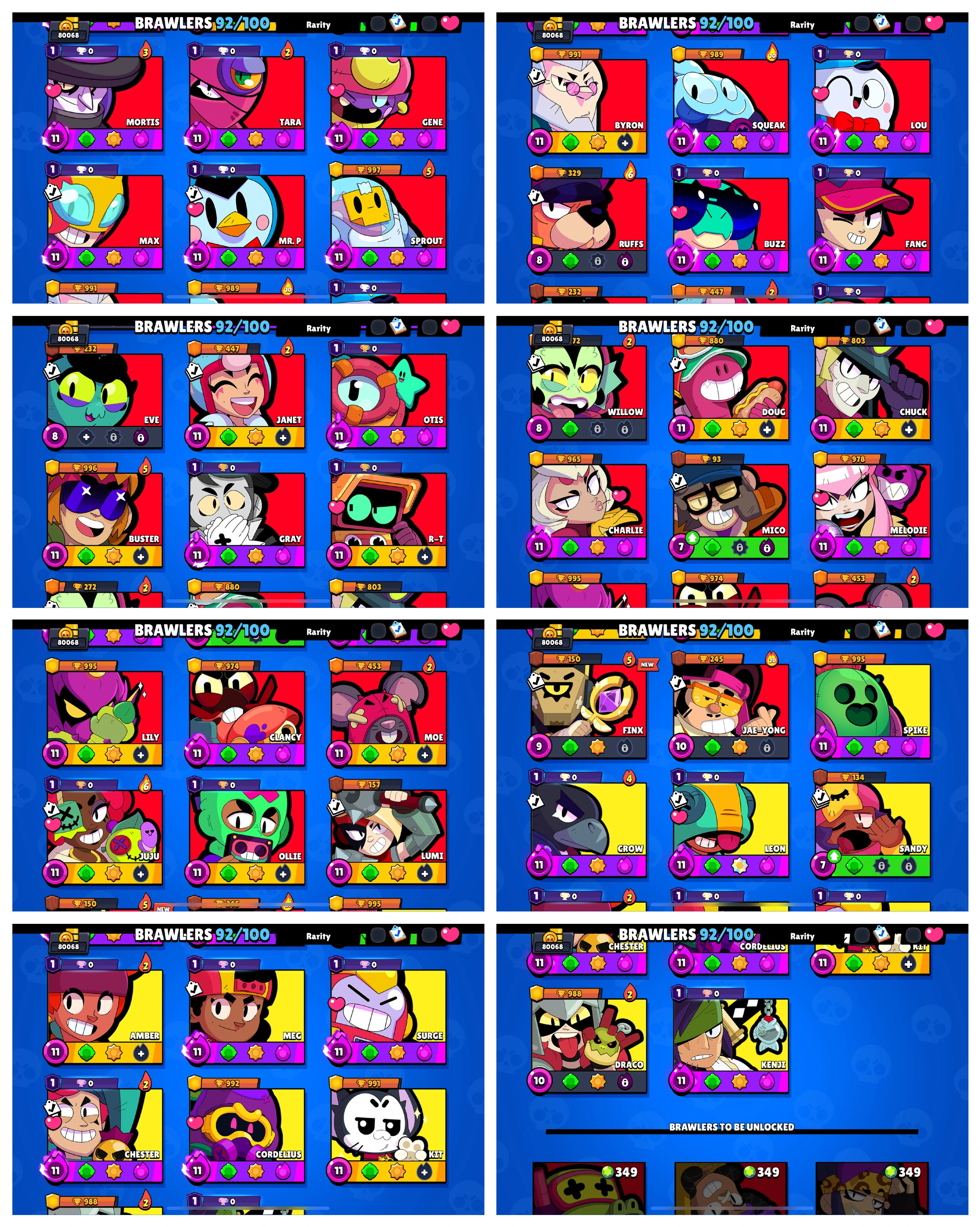 TOTAL: 422 SKINS ✅ 83 Brawler Max ✅ 61 HC ✅ 80K Trophy ✅ 92 Brawlers ✅ Rare Skins-102, Epic-178, Super Rare-116, Legendary-15, Mythic-07, HC Skins-4✅ Android & Ios
