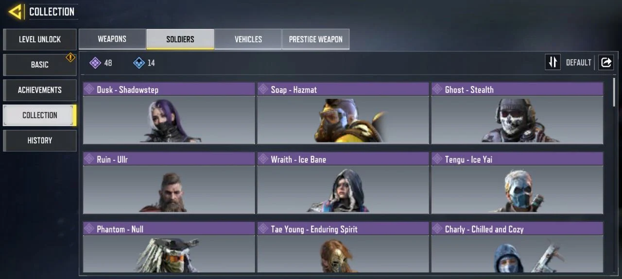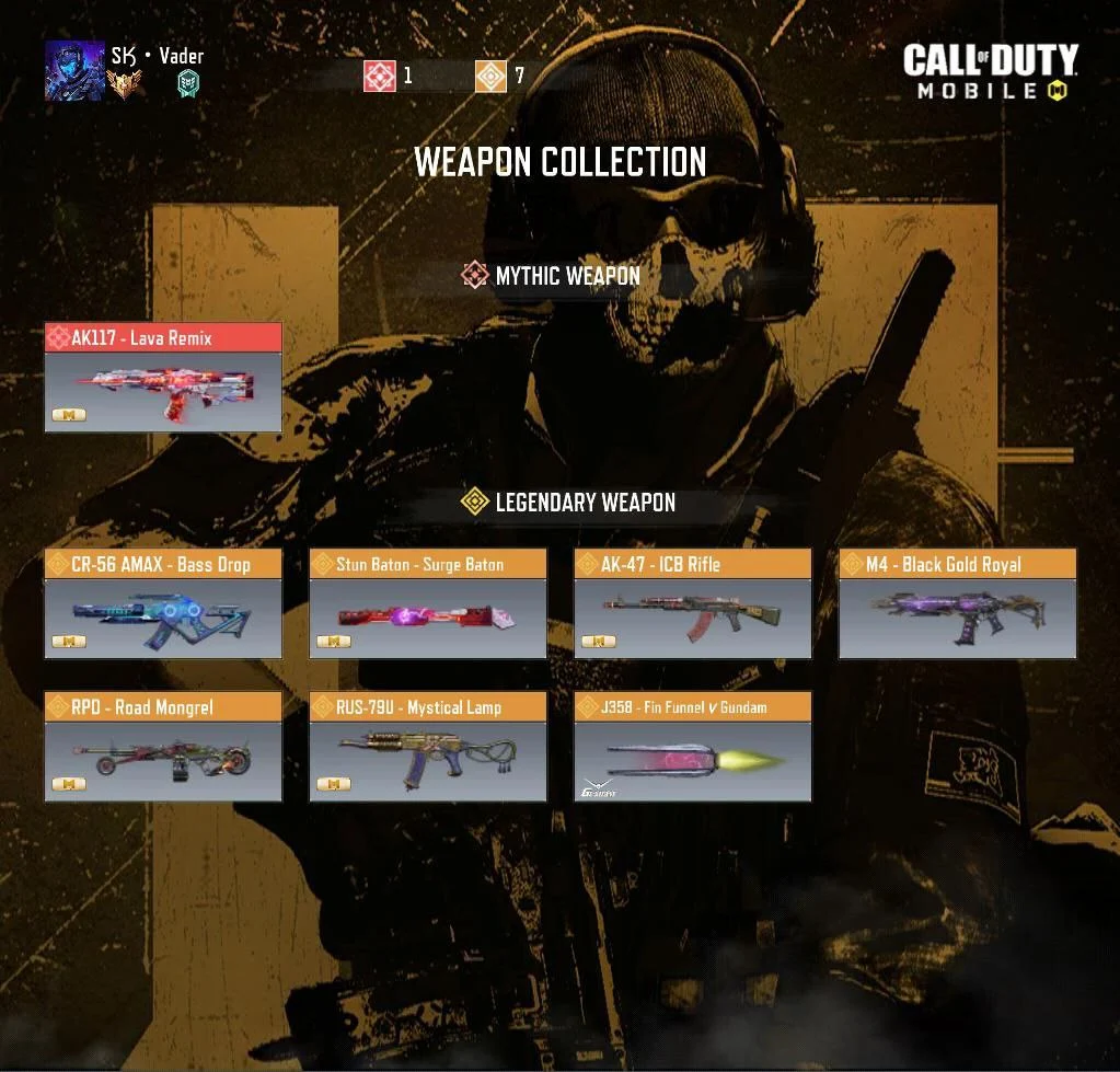 iOS Android 🎮 Level 217 🧨 Rank Master 🏆 117 Epic 🎯 7 Legendary 💯 1 Mytich 🛍️ 48 Epic Soldier 🌟 Code608