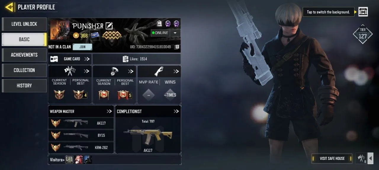 iOS Android 🎮 Level 368 🛍️ Rank Legend 🎯 164 Epic ❤️🔥 8 Legendary 🏆 1 Mytich 🧨 Code618