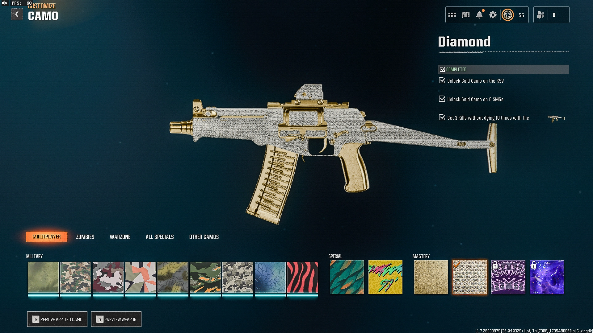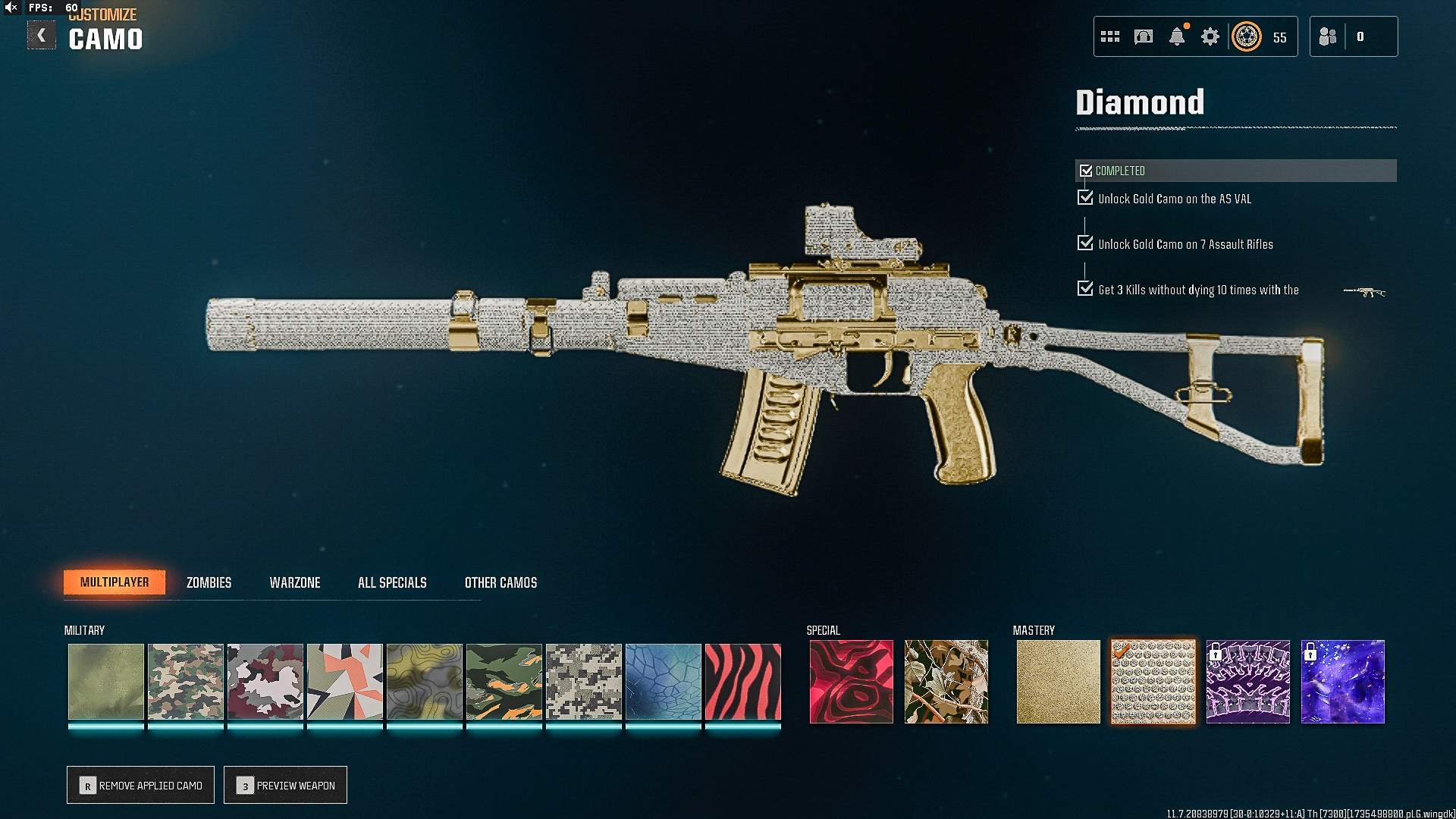 ✨ 20 Diamond Camos 🎯 260 Camos 🕹️ Level 55 + 50 Wins 🔒 17 Operators 💎 Ranked Ready 🎮 Prestige-Ready 🔥 Full Access 🔗 Linkable: Steam, Battle.net, PSN, Xbox 🚀 BO6 #A2C8V7