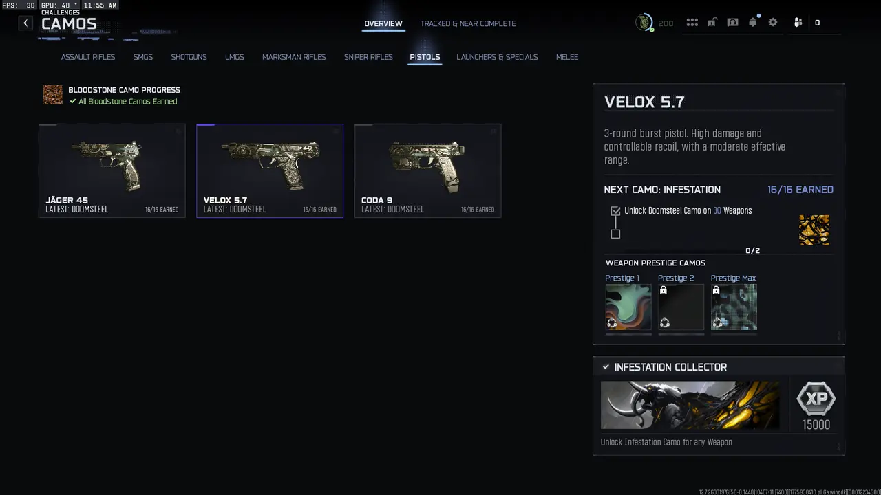 💀 PRESTIGE MASTER 200 🛡️ BO7 ⚔️ SINGULARITY 47/47 🦅 Level 200 🔫 50 GUN MAX 🧨 GENESIS 47/47🌑INFESTATION 30/30 🌑APOCALYPSE 30/30🌑11 WEAPON PRESTIGE 1🌑39 MAX PRESTIGE 0🌑Linkable Platforms: Steam • Battle.net • PSN • Xbox ⛓️