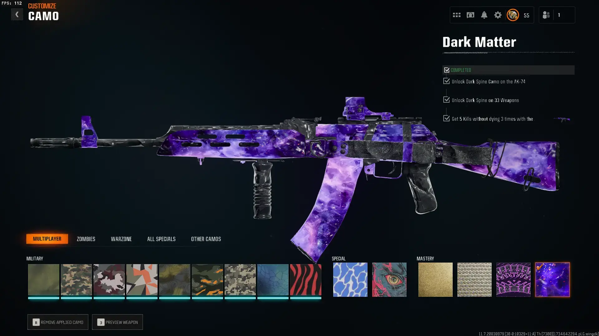 【🏸 Warzone 4 🏸】【 Dark Matter + Level 55 Prestige 1 】 ⚔ All Multiplayer Camos Unlocked ✨ Dark Matter Legit Unlocked on all 33 Black Ops 6 Guns ☄ PC/XBOX/PS