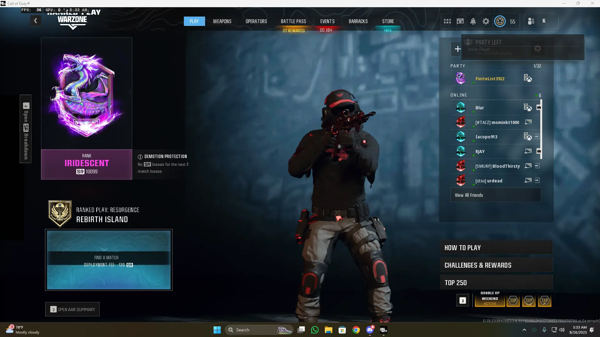 🐺 WZ4 Rebirth 🐺 Iridescent Rank SR 10040 S5 ⭐ ranked ops 🚀 Full Access 🌟 Warzone Resurgence Rebirth Iridescent 🌟Linkable to: Steam, Battle.net, PSN, Xbox 🎮 Warzone 4 irI