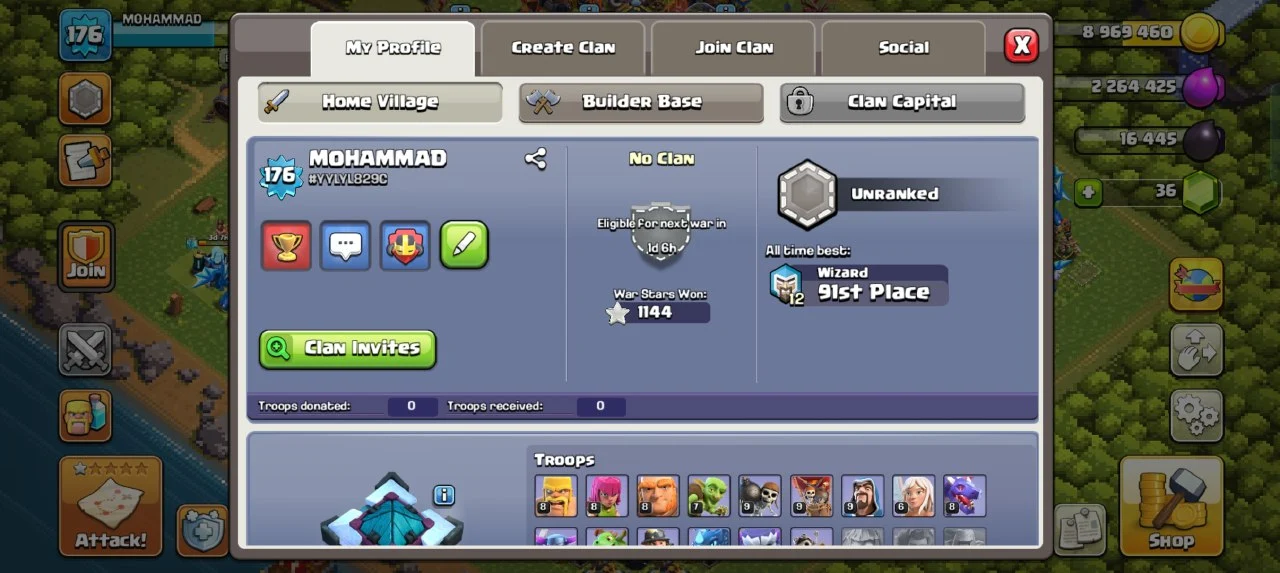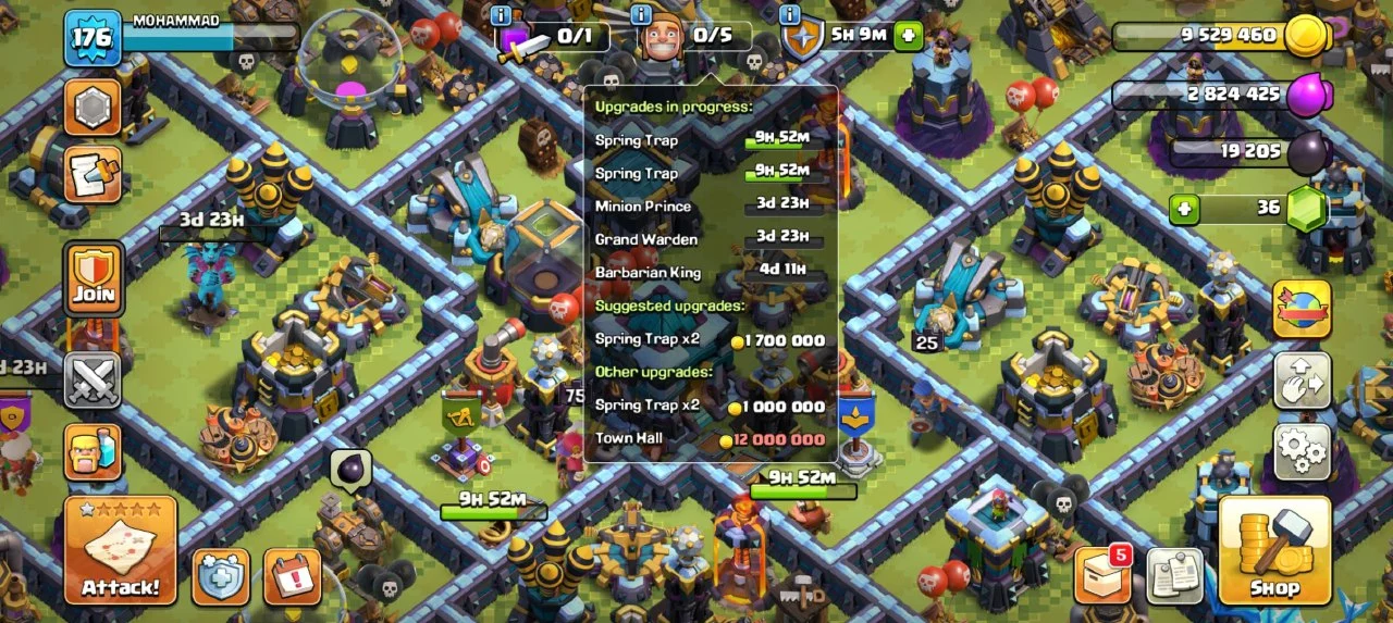 0p FULL MAX TH 13 ⸱ MAX HERO ⸱ 176 XP ⸱ 20 EQUIPMENTS ⸱ SB FB ⸱ HERO SKINS ⸱ 1144 WWS ⸱ BH 8 ⸱ INSTANT ⸱ AVAILABLE ⸱ RESEARCH LEFT ⸱ CHEAPEST