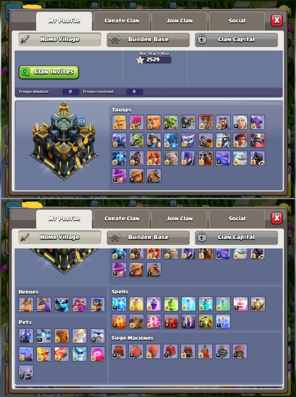 [ 4 HEROES MAX ] 💥 TH17 | XP 252 🏆 1 EPIC MAX 🛡️ 9 HEROES SKINS | 2.5K WARSTARS 🔄 NAME CHANGABLE ✨ 1.2K GEMS 🚀 INSTANT DELIVERY