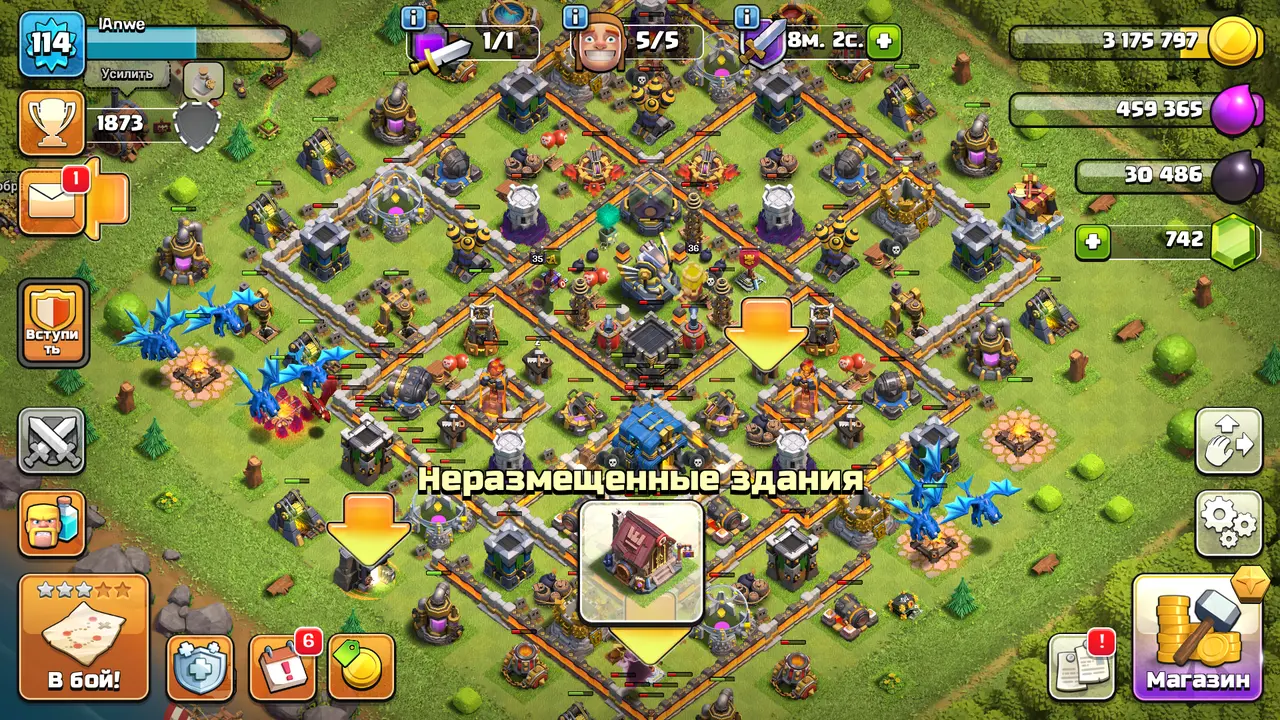 C1139 114 XP+TH12+2 Stars+742 Gems Bk-36 Aq-35 Gw-20+War Stars 38+Builder Bas 9+IOS/ANDROID