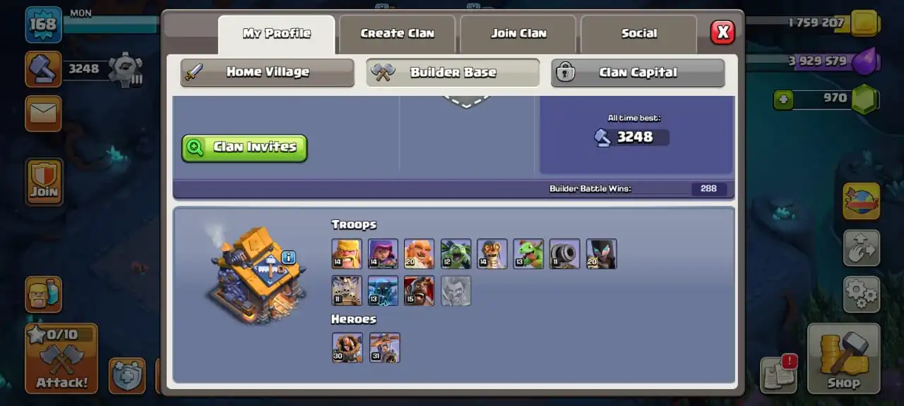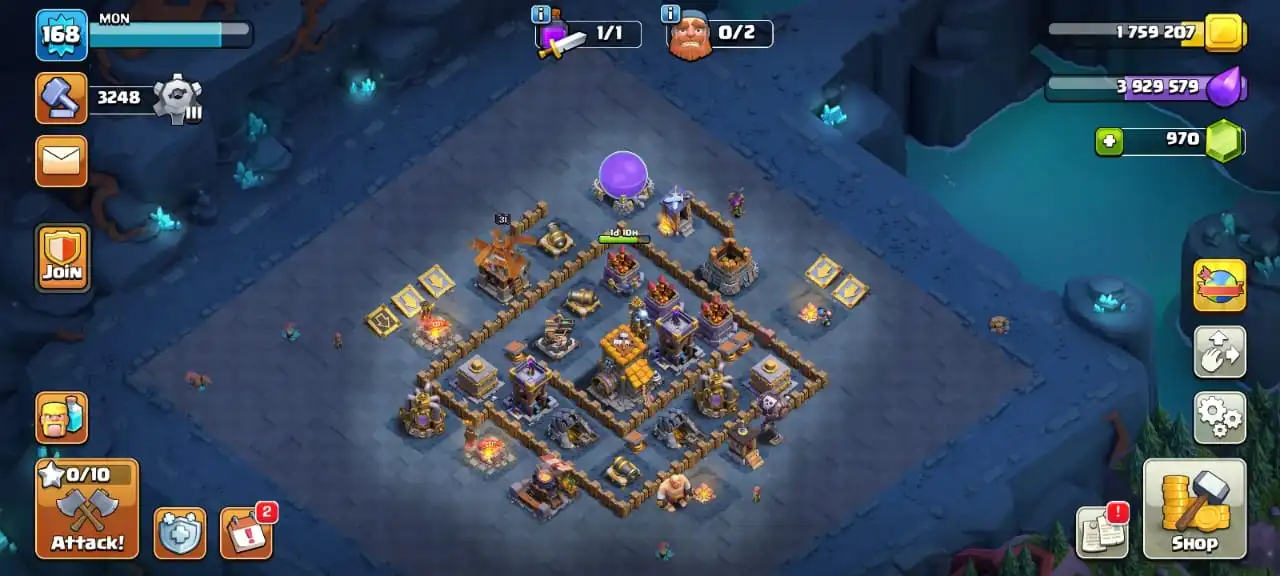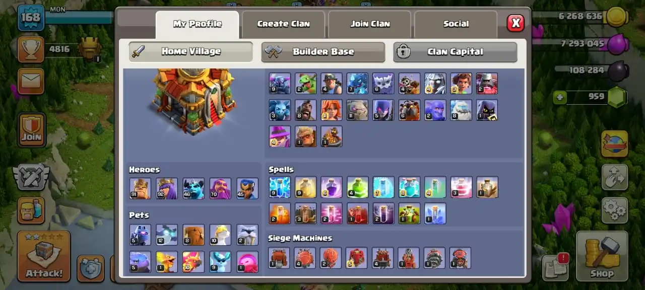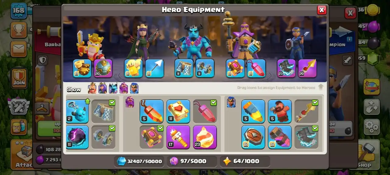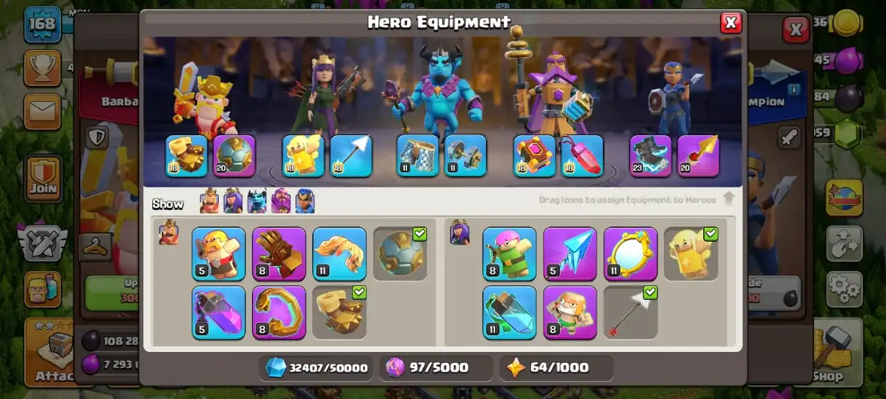 Cheap🔥TH 16 almost max🔥high heroes level 91/92/46/70/45☠️10 epic equipment⚒️6 builder’s⚒️all helper opened✅cn on