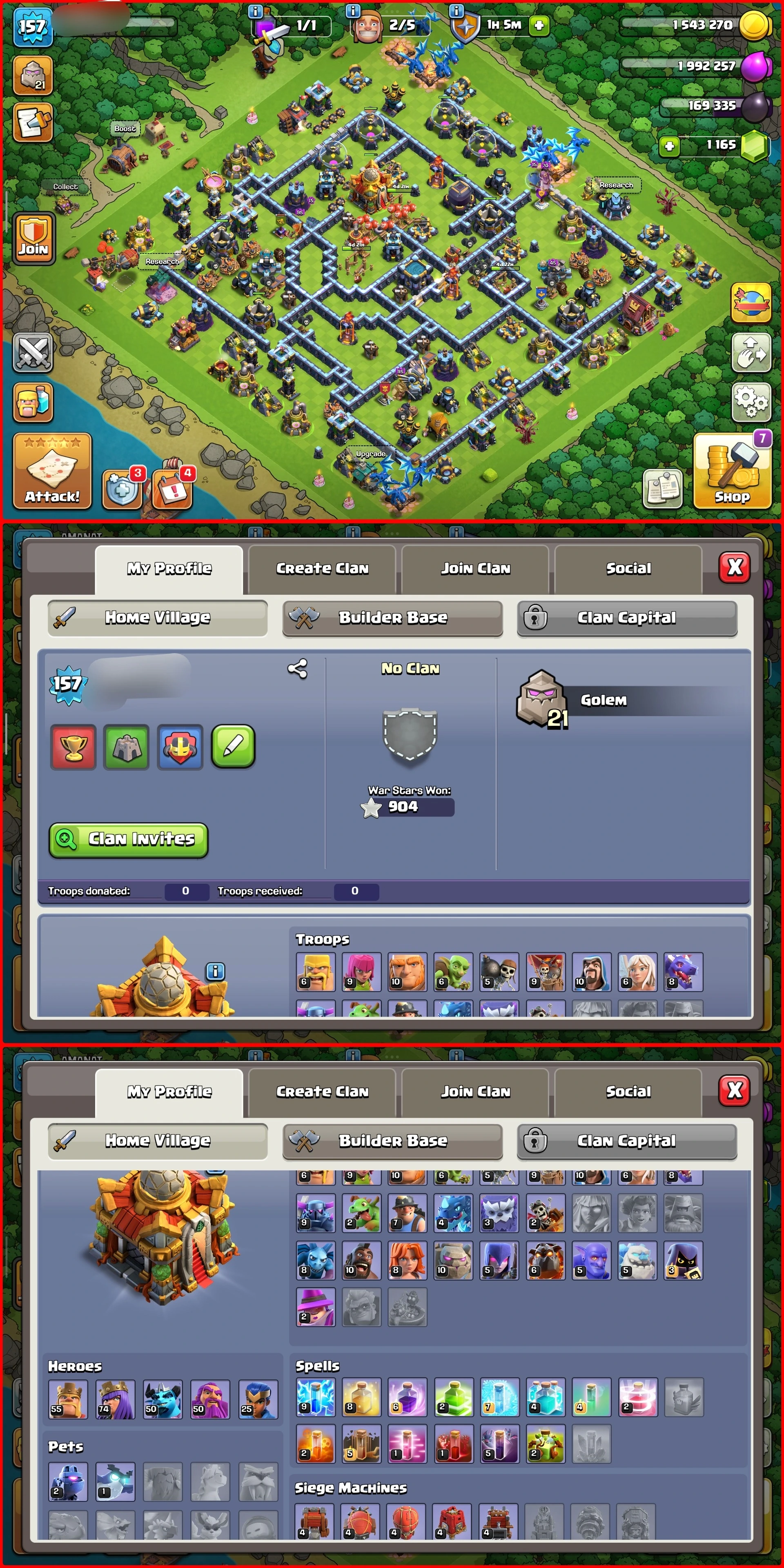 ENORMOUS TH16 DONATION I'D | Strong Defenses & Troops | 55/74/50/50/25 | Hefty Equipments & 500 NC | RB376