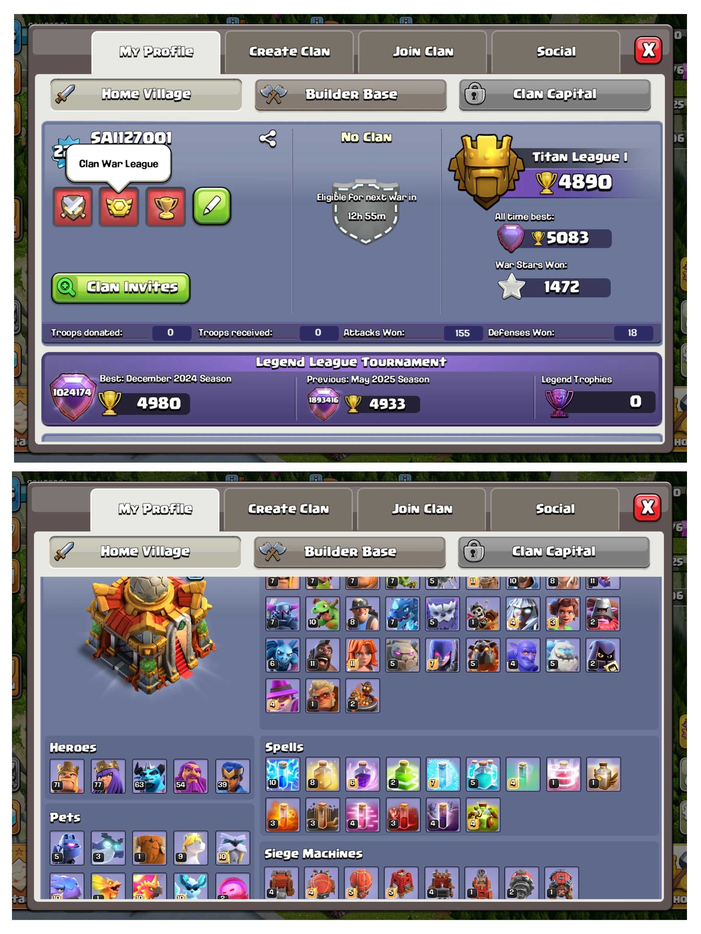 + 100 RAID MEDALS โจ๐ฅ | โญ 1452 WAR STARS ๐ | ๐ 5083 TROPHIES ๐น | ๐๏ธ MAGIC ITEMS & ๐ EPIC EQUIPMENT ๐ช |
