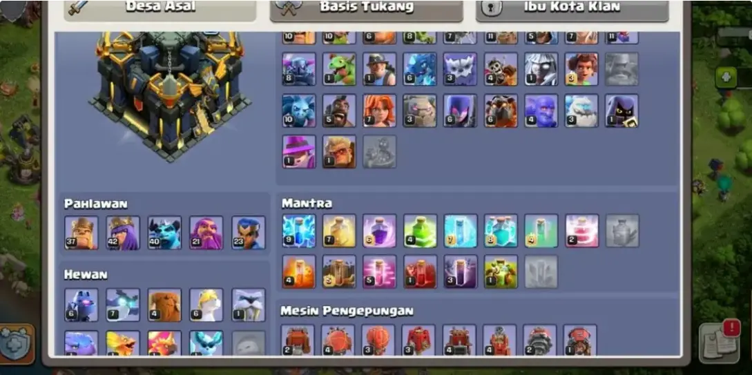 [Instant] TH17 | BK 37 AQ 42 MP 40 GW 21 RC 23 | Gems 1397 | 4 Epic Hero Equipments: Giant Gauntlet, Frozen Arrow, Rocket Spear, Electro Boots | Supercell ID