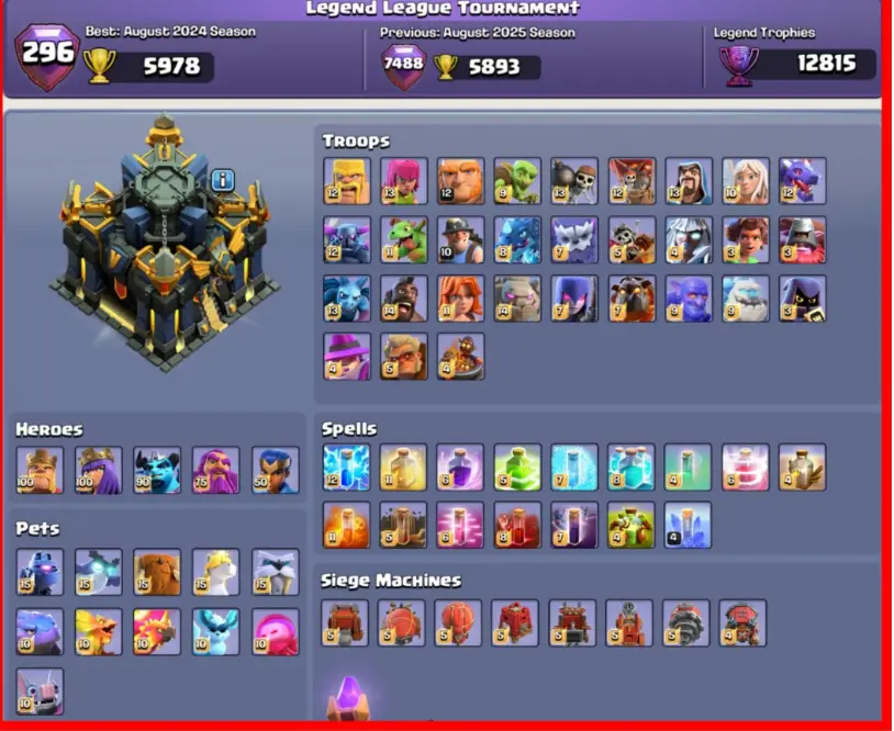 RAREST 296 GLOBALLY RANKED🌟TH17 MAXED✨️RENEGADE SKINS FULL SET🔥29 MAX EQUIPMENTS👑10 MAX EPICS✨️256 XP LEVEL👑MAGIC SET HERO SKINS FULL SET🔥INSTANT DELIVERY