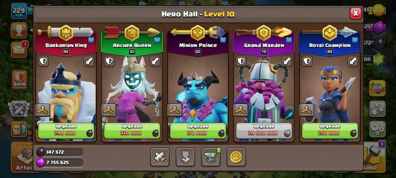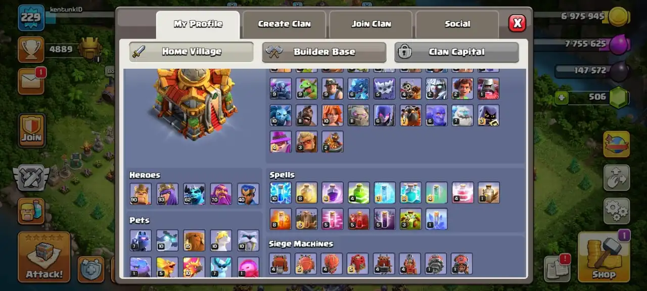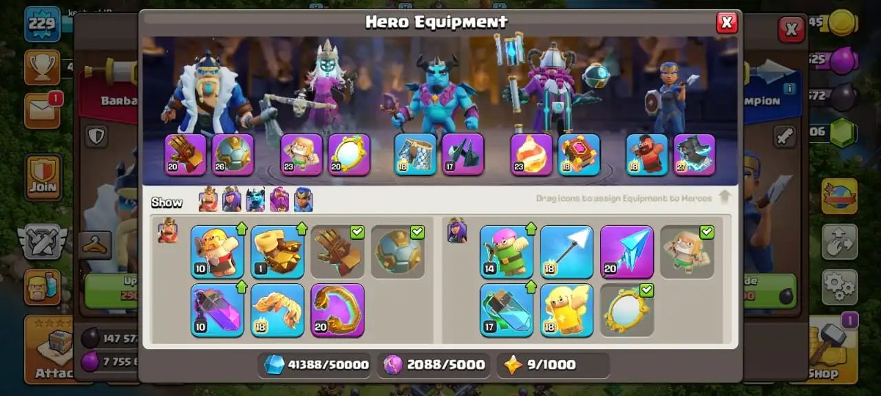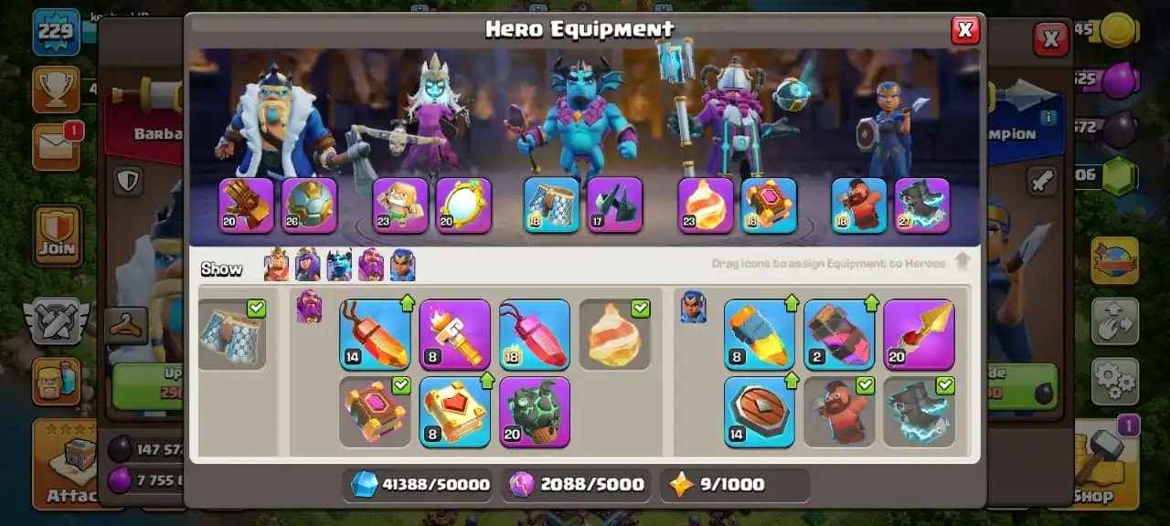 Sale🔥TH 16 almost max🔥high heroes level 90/93/62/70/40☠️full equipment 32/32⚒️max builder’s base✅free name change✅6 heroes skin