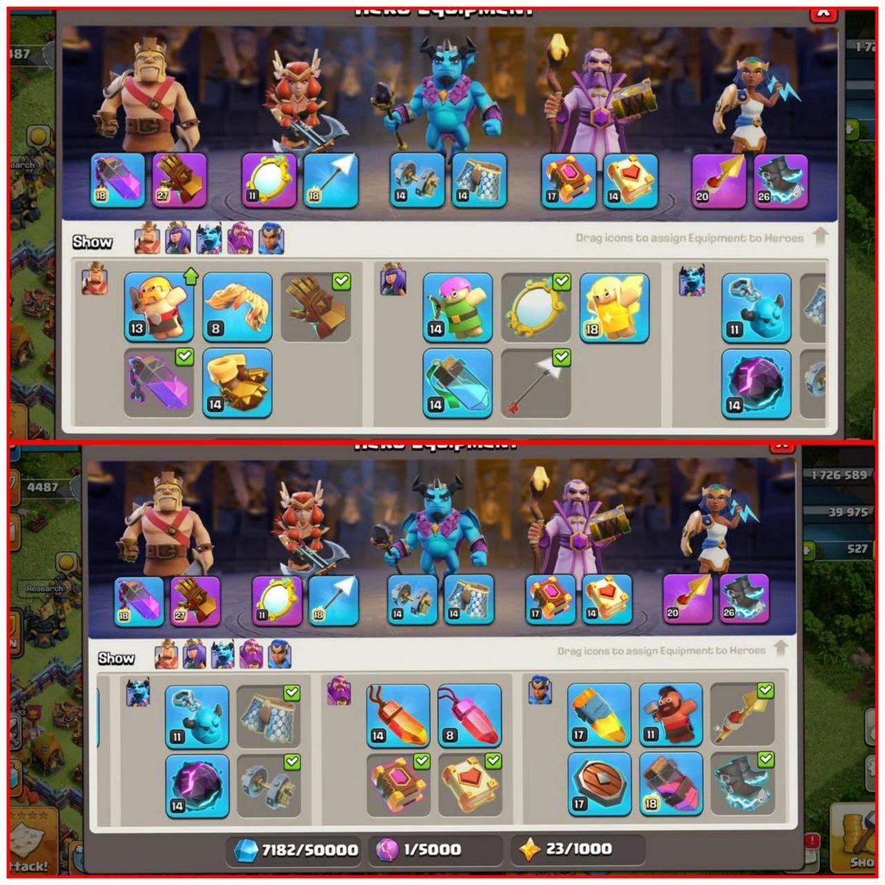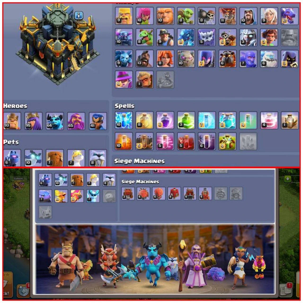 SEMI MAX TH17 ⭐️ ALMOST MAXED HEROES [93-95-64-65-41] ⚡️ VERY GOOD DEFENCE & LAB 🔥 HIGH EQUIPMENTS (4 EPIC) 💥 ATB: 5527 👾 {236 EXP} ☠️ BH LVL 10 💫 NAME CHANGE 1.5k GEMS