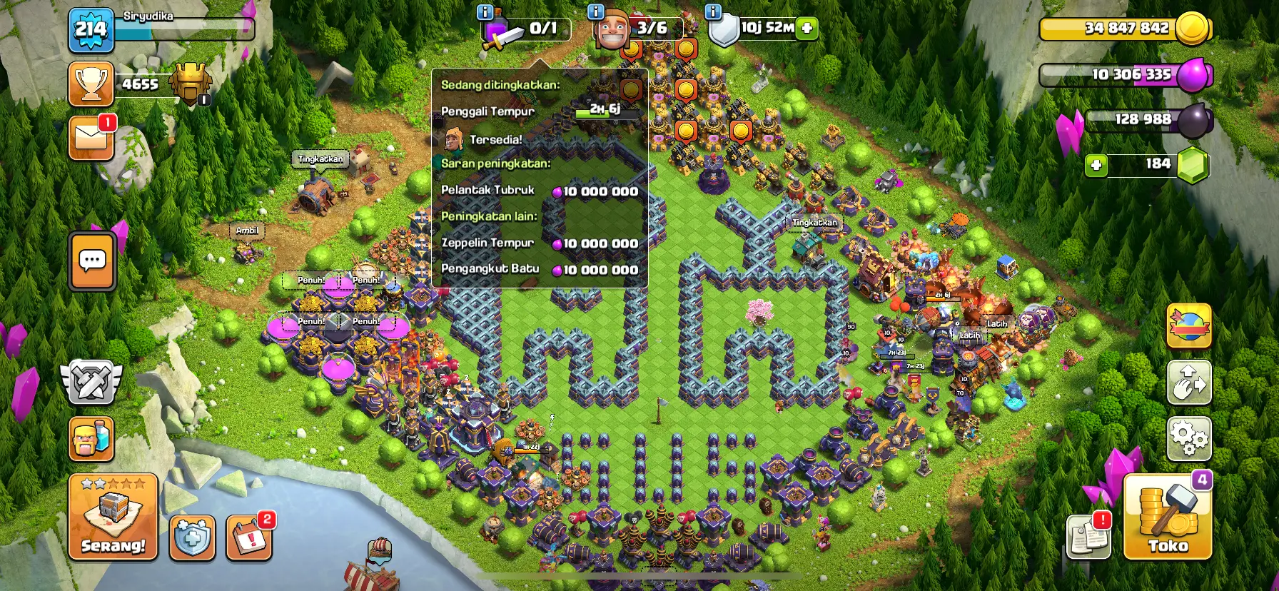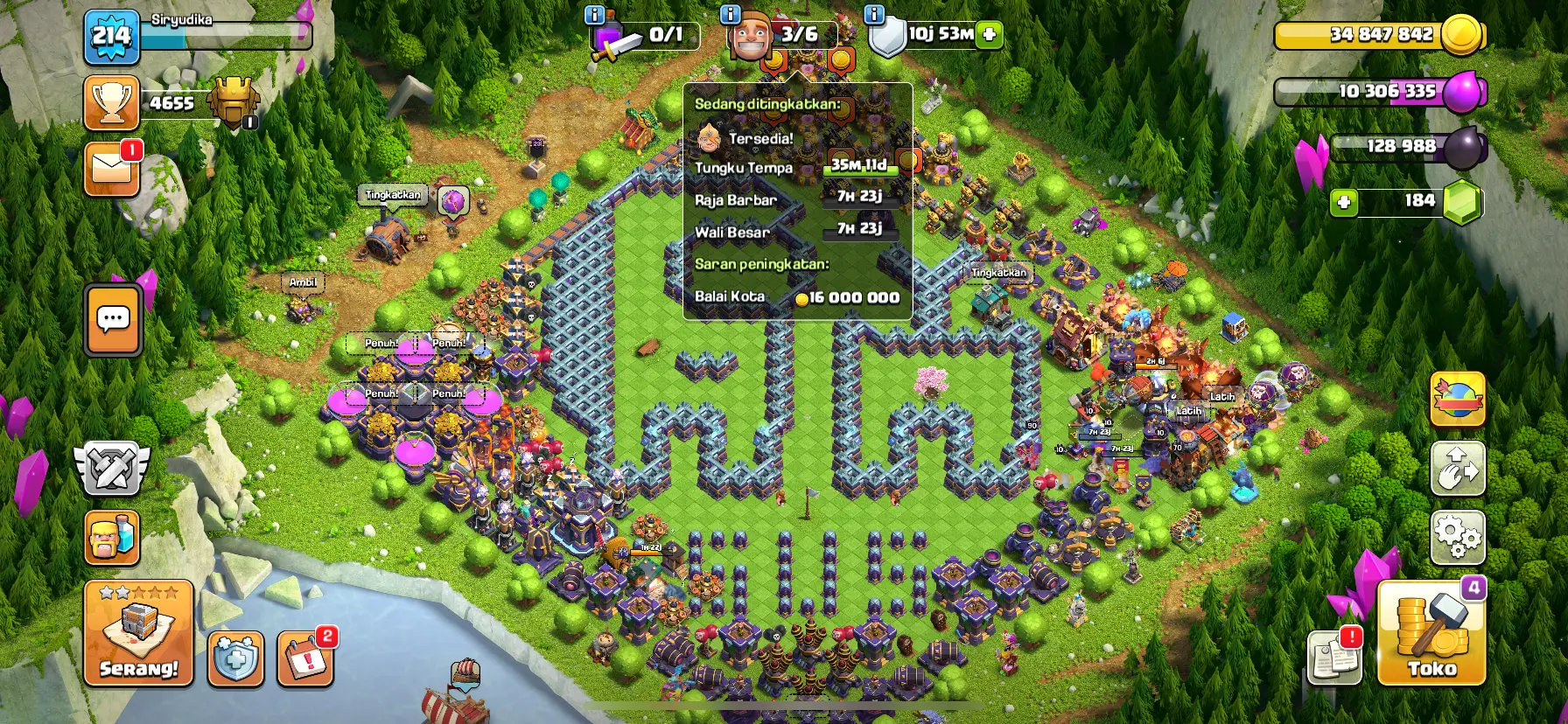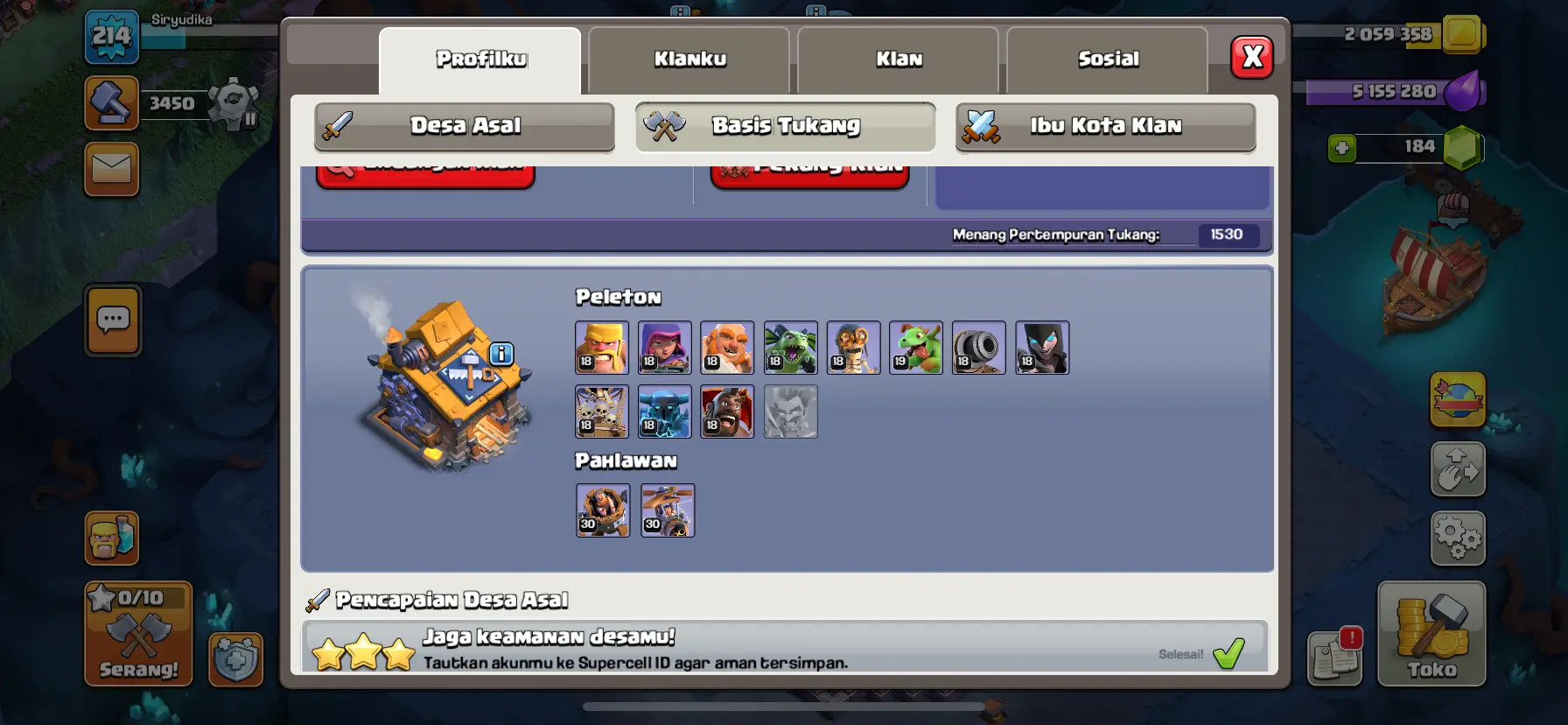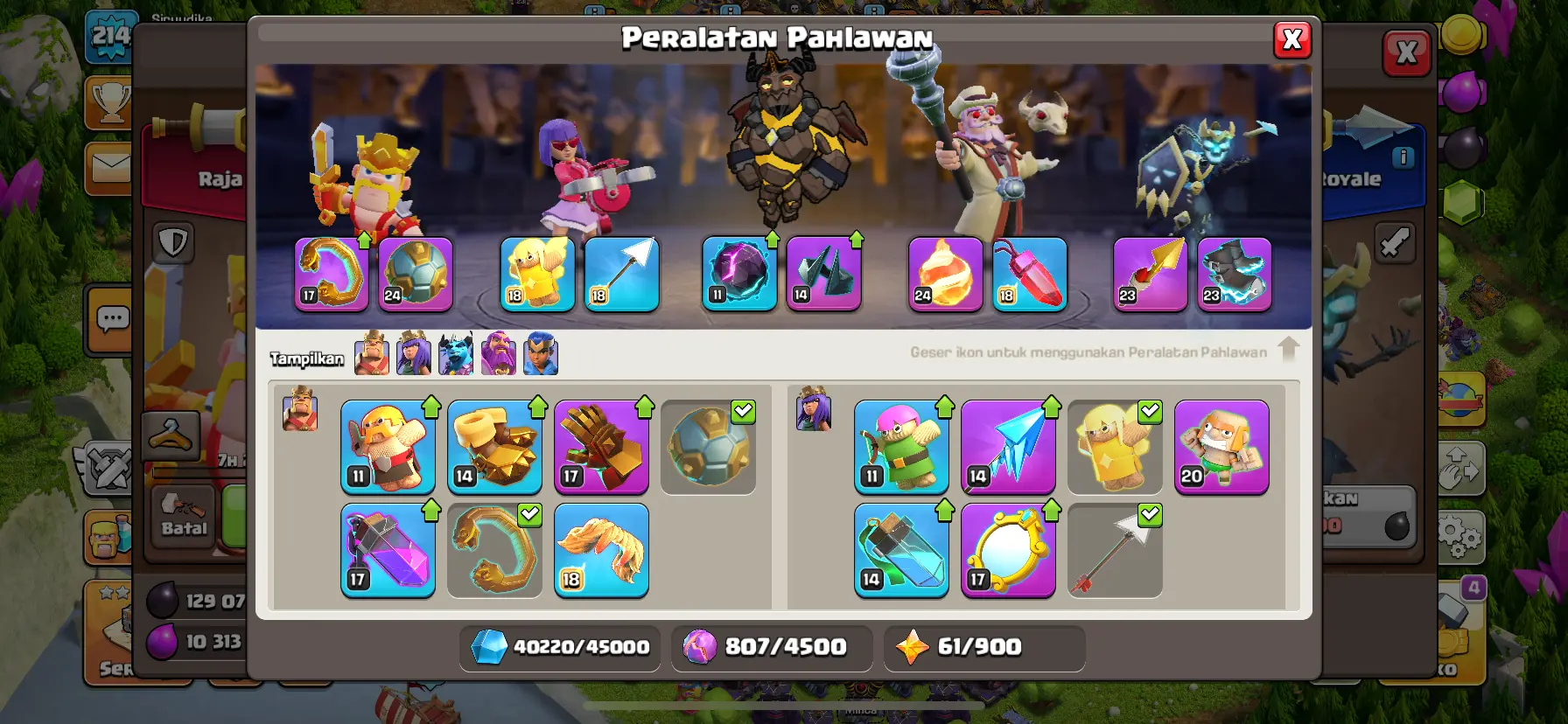 TH 15 SEMI MAX🔥 HIGH HEROES🔥 LEVEL 89-90-70-64-40 EQUIPMENT EPIC FULL🔥 MAX DEFFEND & HERO & WALL🔥 [SKIN HEROES 10] 🔥 GEMS 700 RERE ACCOUNT 🔥