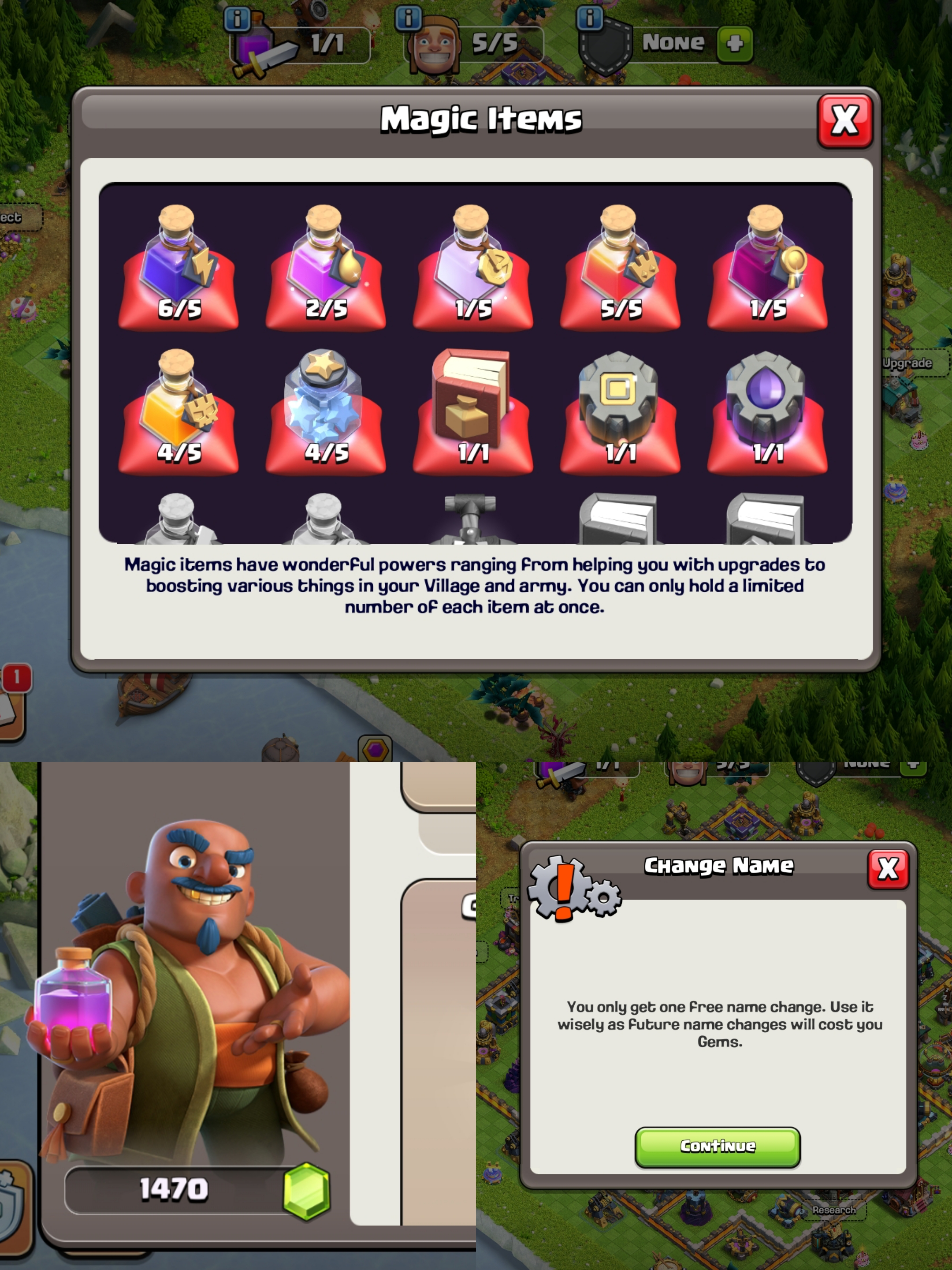 ⭐ TH 17 ⭐ DONATION ⭐ 4 EPIC EQUIPMENT ⭐ HEROES K-42 AQ-59 MP-41 GW-25 RC-20 ⭐ NAMECHANGE FREE ⭐ 1470 GEMS ⭐ MAGIC ITEMS