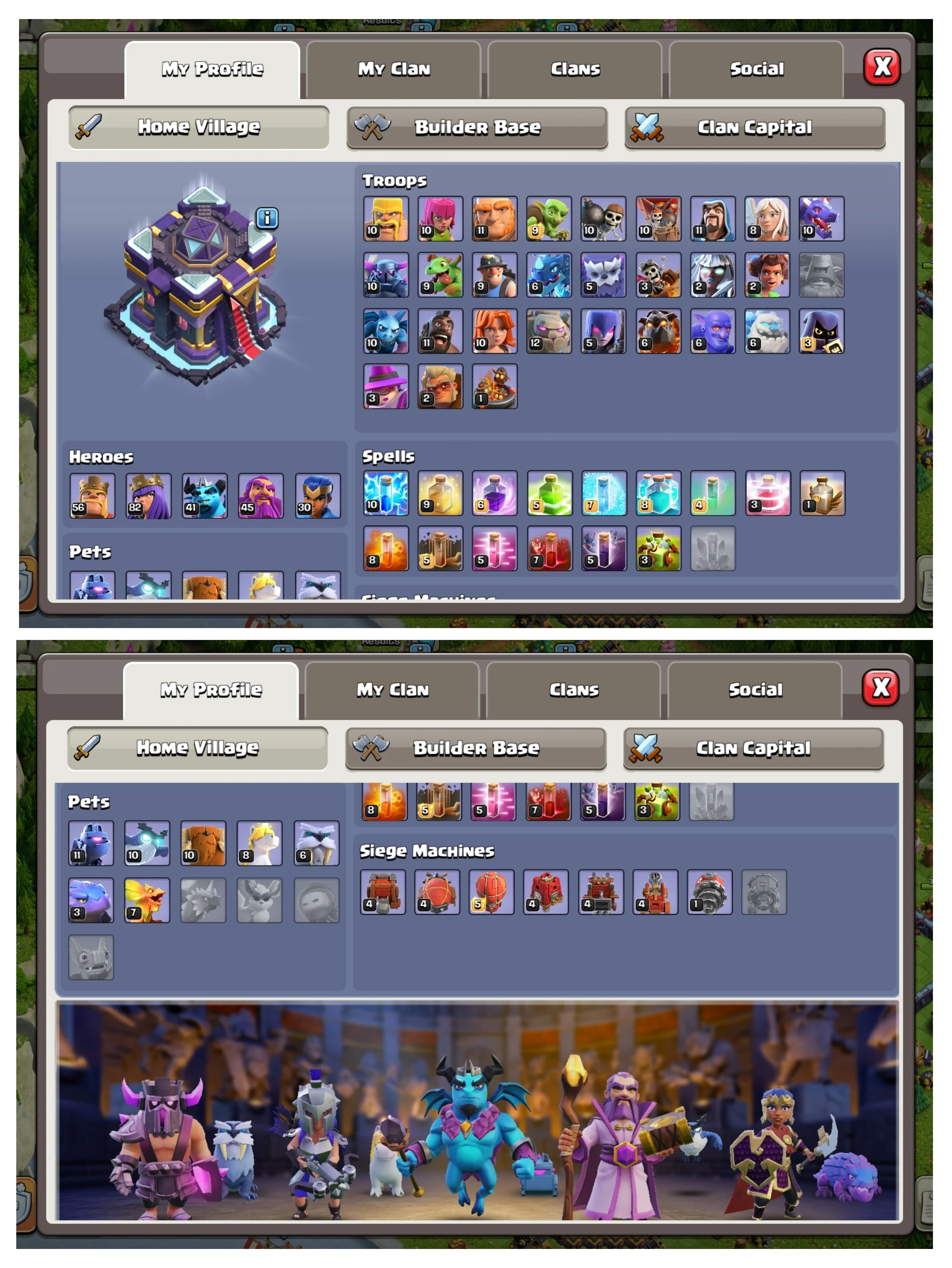 TH15 High XP Supersell Account 💎 XP 202 | Max Defense 1574 | CWL Base Ready | 6 Builders | 8 Epic Equipment + 5 Max Hero Equip | 4950 Gems | 7 Pets | Paid Hero Skins | Fresh Mail | Name Change | 60% OFF Limited Time | Heroes 56-82-41-45-30 🏰