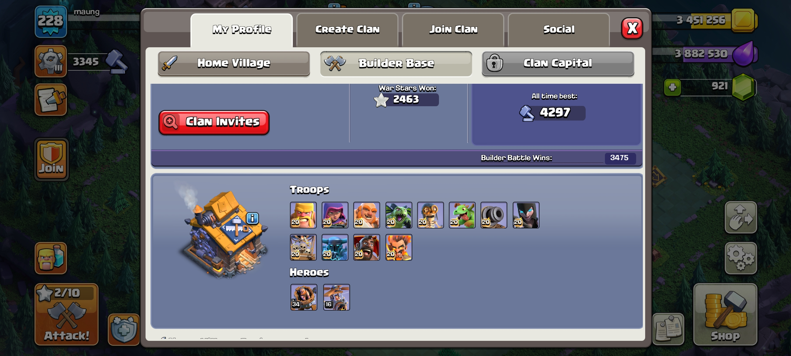 TH17 HIGH ACCOUNT--XP228--HERO 83-80-53-65-40--7X EPICS HIGH--BUILDER HALL MAX-- 6 BUILDER--NC FREE