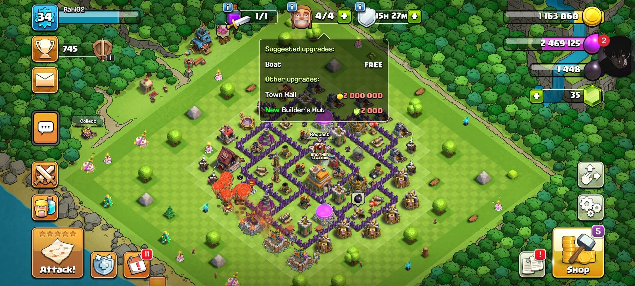 Th7 100% Full max🔥4th builder🔥Name change free🔥Old stone and trees