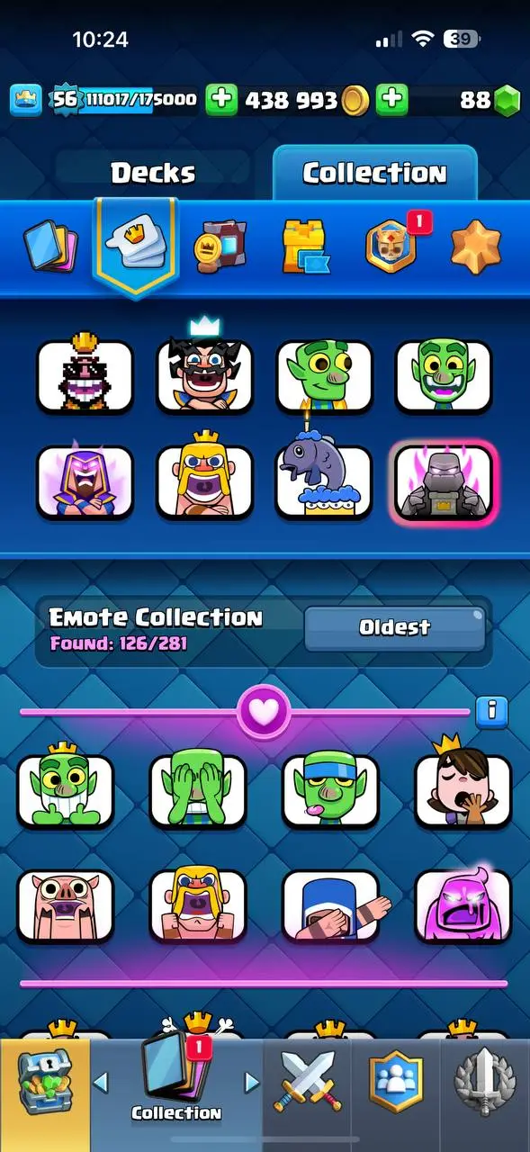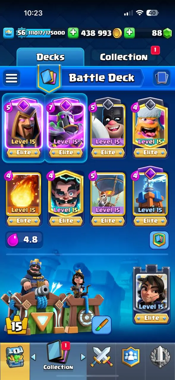 0p💎 PREMIUM 💥 SKINS 7 🔥 MAX 51 ⚔️ ARENA 24 💪 10 ELITES ⚡️ 11 EVO 🏆 13800 TROPHIES 🎯 XP56 🏰 KT15 😎 126 EMOTES ⚡️ INSTANT