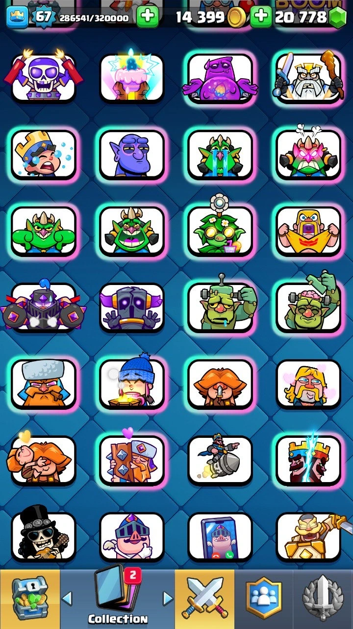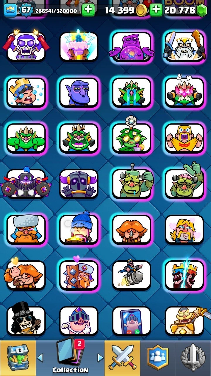 10 745 Trophies 🏆 XP level 67 | 90+ emotes | 20 778 Gems 💎 14 Evolutions | 99+ lvl 14 cards !!