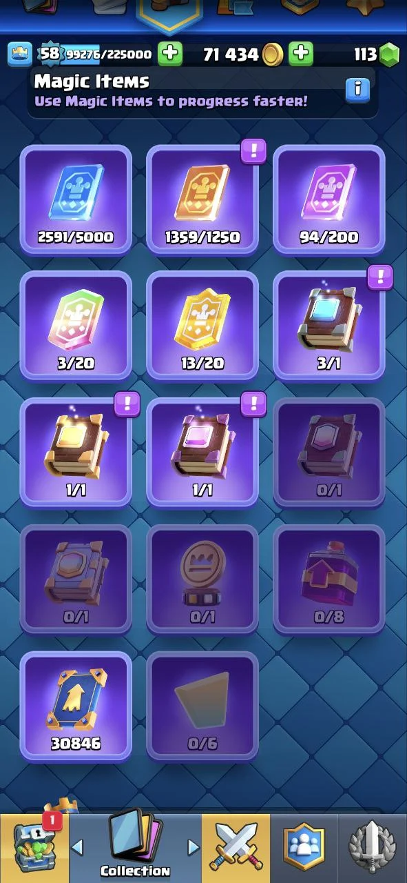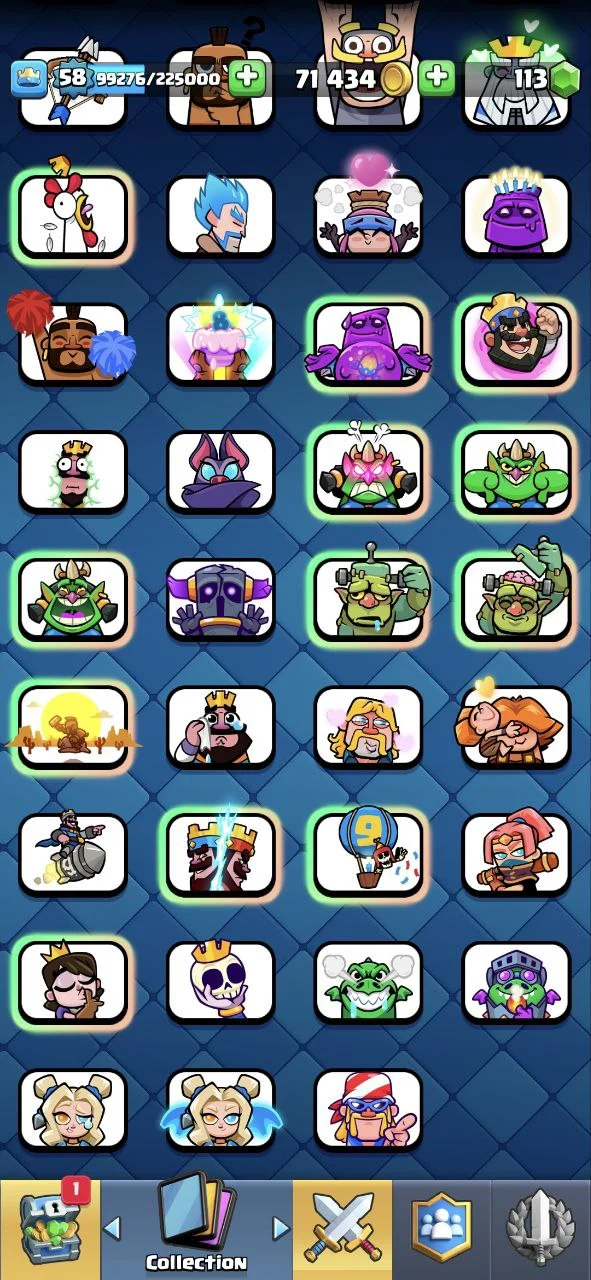 🏆 11000 TROPHY ✨ RARE KISS EMOTES ✨ KT 15 🔱 LVL 58 ✨ MAX CARDS [48] ✨ ELITE [17] ✨ EVO [14] ✨ LVL 14 [31] ✨ EMOTES [124] ✨ CARDS [120] ✨ FREE NAME CHANGE ✨ 10000% SAFE