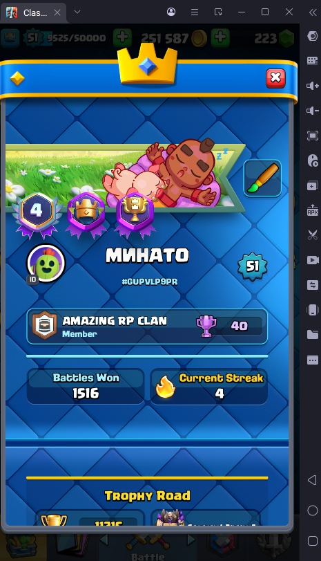 11215 TROPHY 🏆 51 LVL 💯 KT 14 👑 120 CARDS ♦️ 15 MAX CARDS 👑 3 ELITE CARDS 🔮 10 EVO 💯 EMOTE 79 🎭 #GUPVLP9PR ⸱ TAG ACCOUNT ♥️