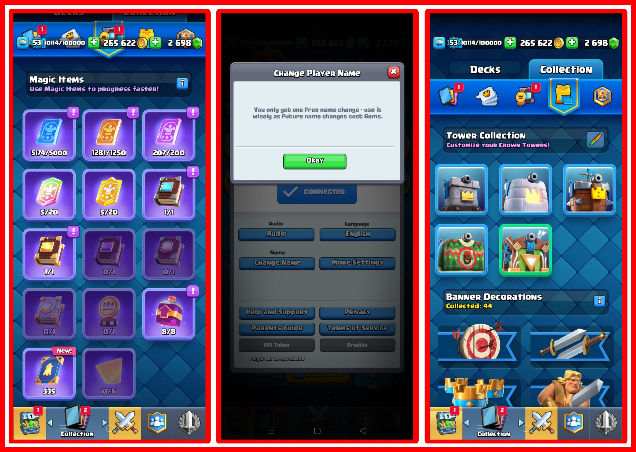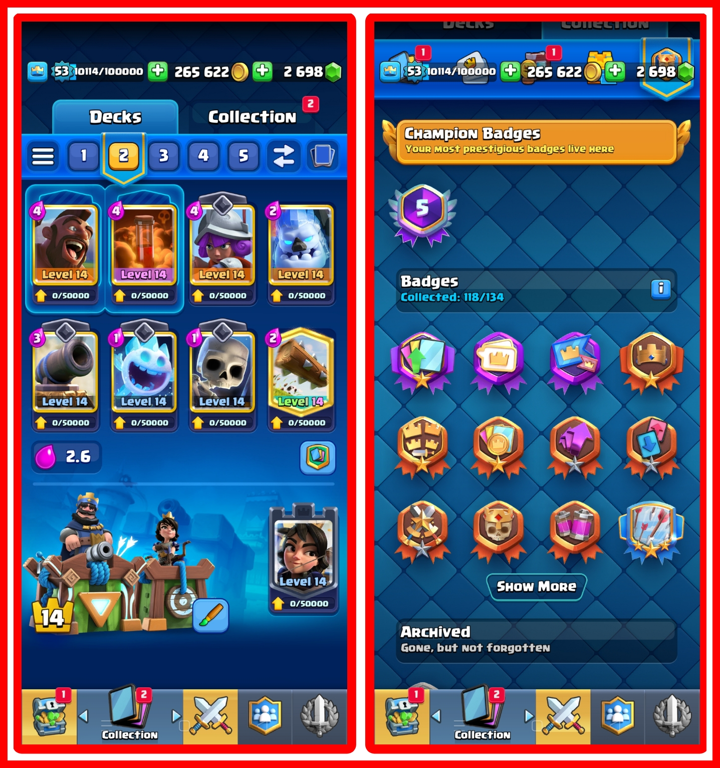 💗 64 MAX CARDS 😍 13 EVO CARDS ✅ LEVEL 53 🚀 6823 TROPHIES 🏆 ARENA LEVEL 18 ❤️ KT LEVEL 14 ☠️ 68 LEVEL ☠️ FREE NAME CHANGE 💎 CHEAP PRICE 💸 INSTANT DELIVERY ☑️ ANDROID & IOS ☑️🤝