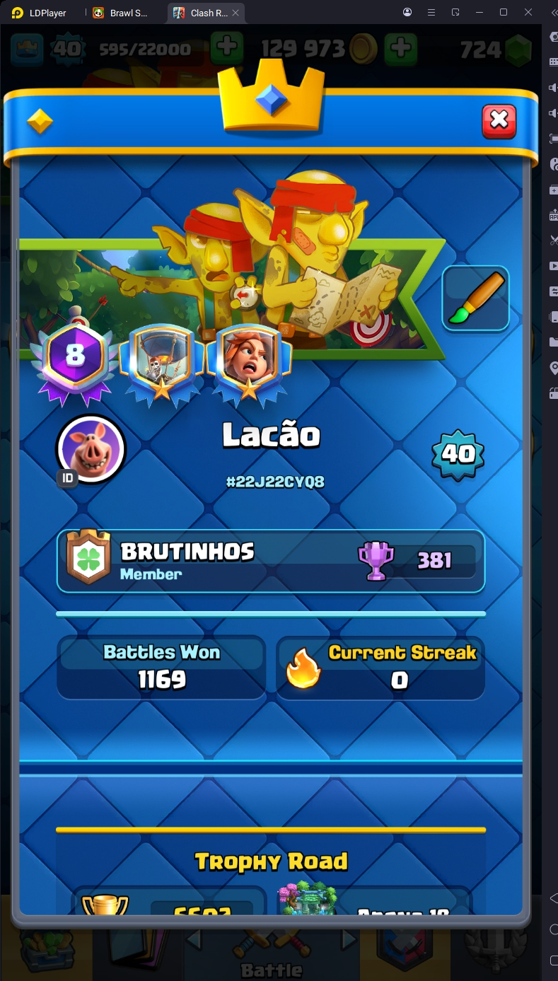 6602 TROPHY 🏆 40 LVL 💯 KT 13 👑 117 CARDS ♦️ EMOTE 18 🎭 #22J22CYQ8 ⸱ TAG ACCOUNT ♥️