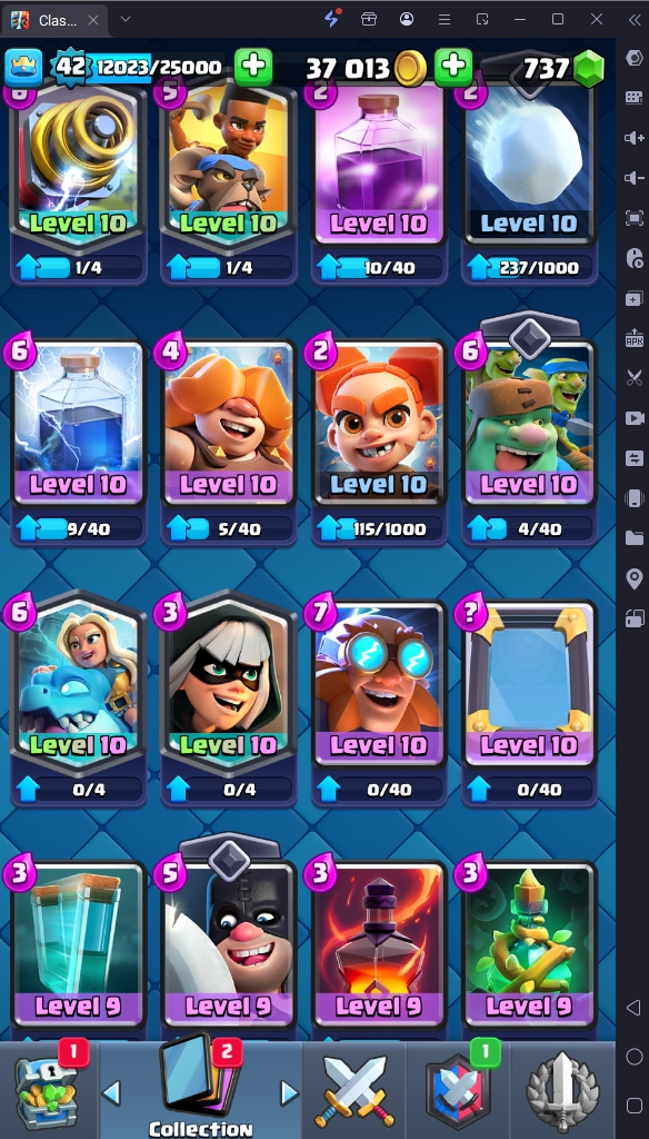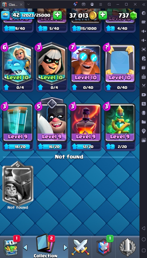 8091 TROPHY 🏆 42 LVL 💯 KT 14 👑 120 CARDS ♦️ 1 MAX CARDS 👑 1 ELITE CARDS 🔮 6 EVO 💯 EMOTE 42 🎭 #VUCU0QQRG ⸱ TAG ACCOUNT ♥️