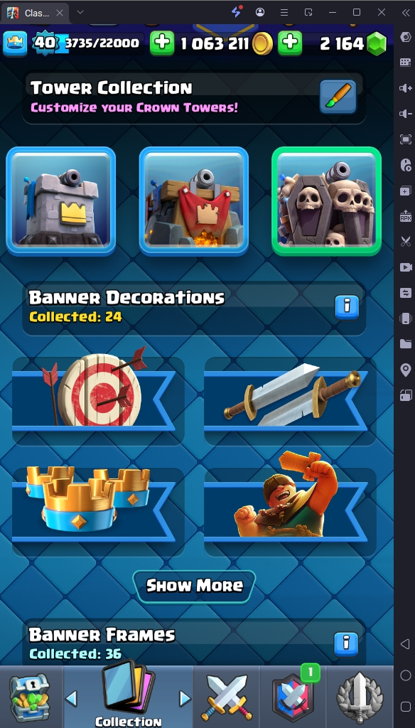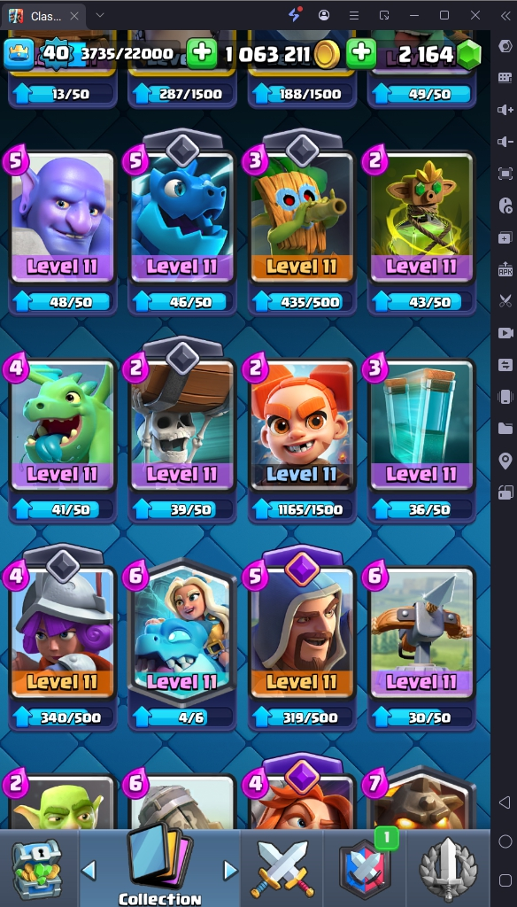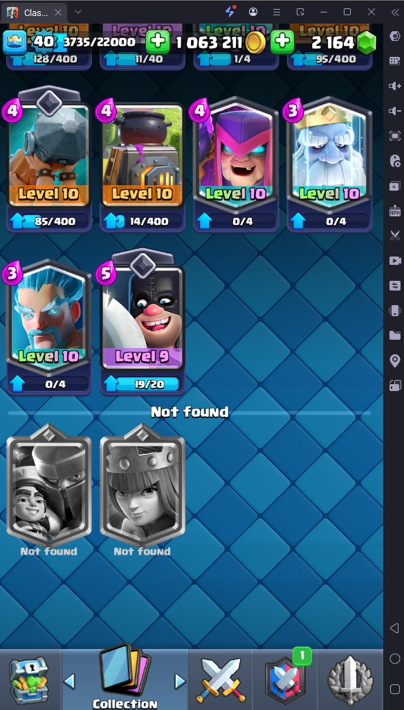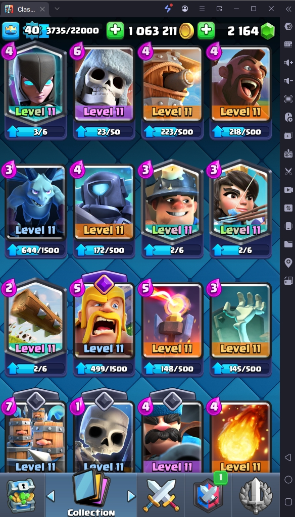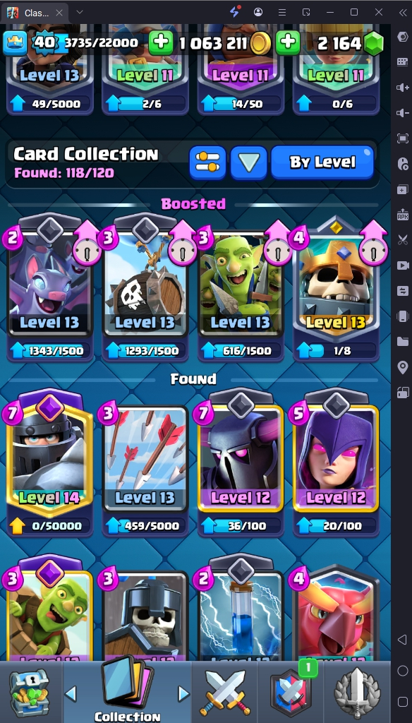 8153 TROPHY 🏆 40 LVL 💯 KT 13 👑 118 CARDS ♦️ 1 MAX CARDS 👑 0 ELITE CARDS 🔮 7 EVO 💯 EMOTE 31 🎭 #R29LL0U0L ⸱ TAG ACCOUNT ♥️