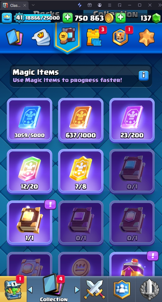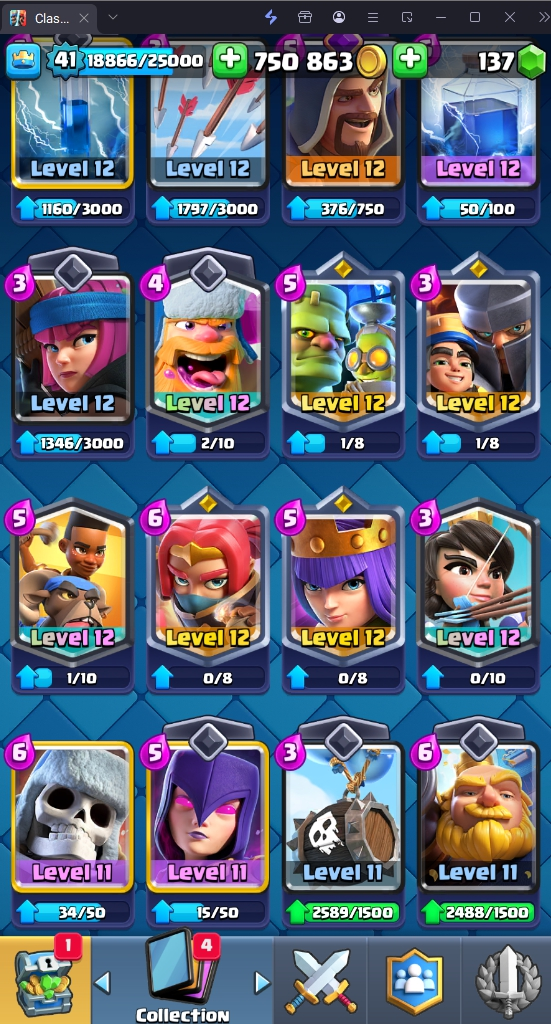 9000 TROPHY 🏆 41 LVL 💯 KT 13 👑 121 CARDS ♦️ 7 MAX CARDS 👑 1 ELITE CARDS 🔮 6 EVO 💯 EMOTE 38 🎭 #RGU2JG9JV ⸱ TAG ACCOUNT ♥️